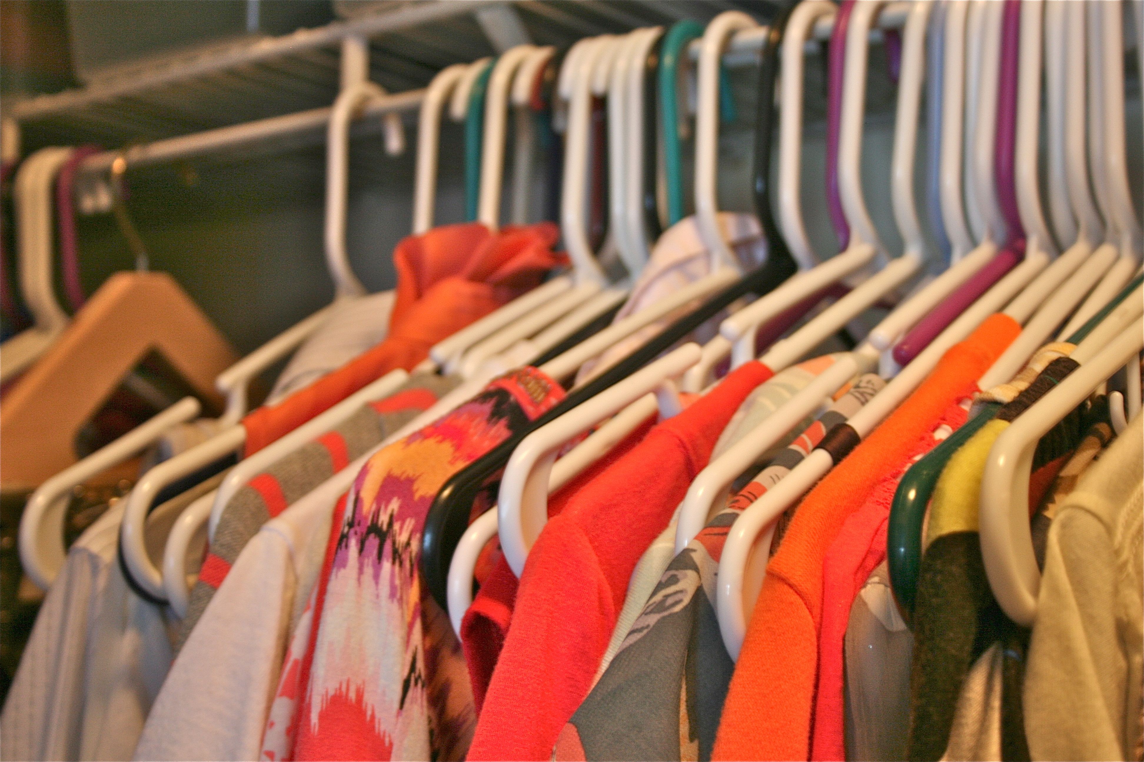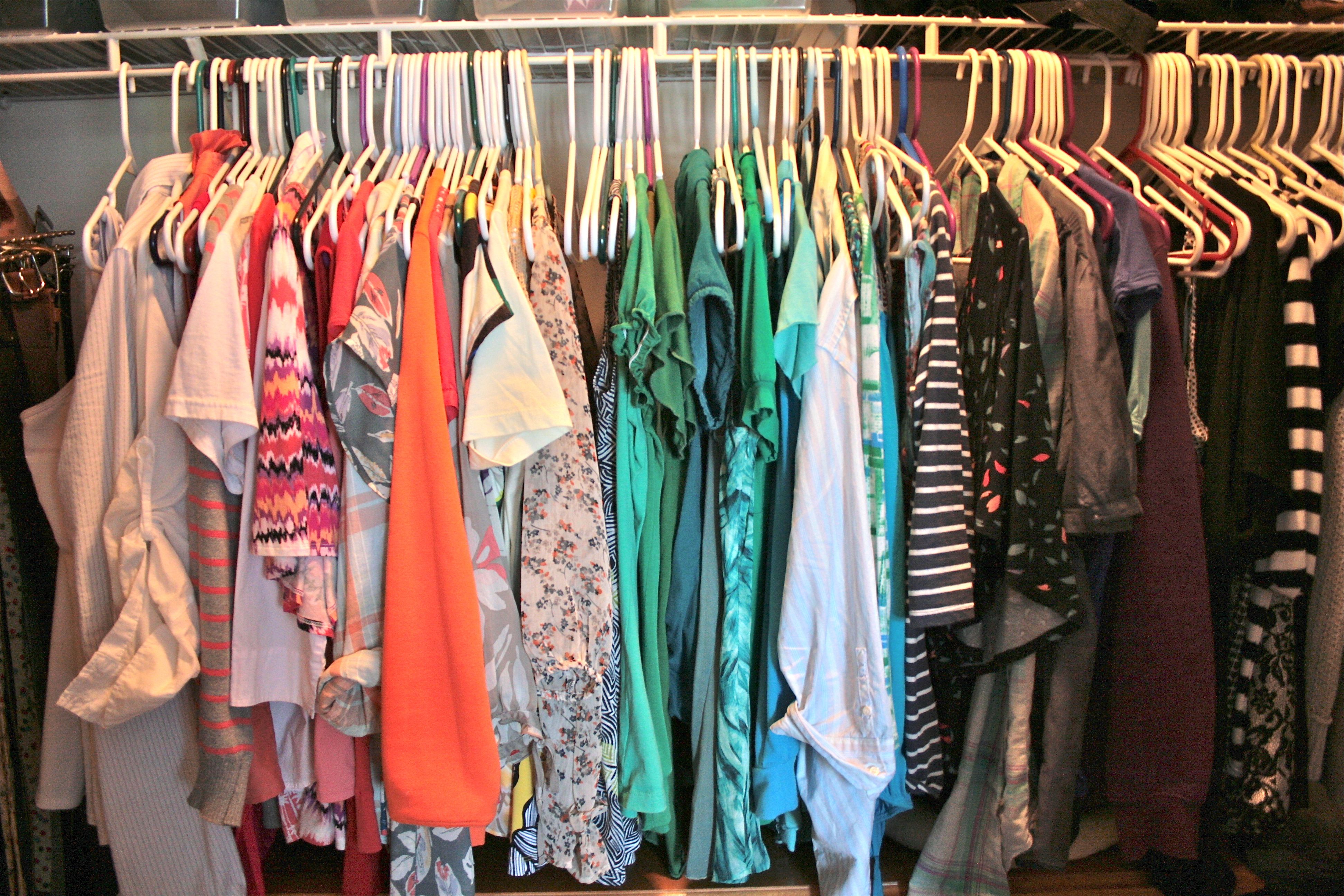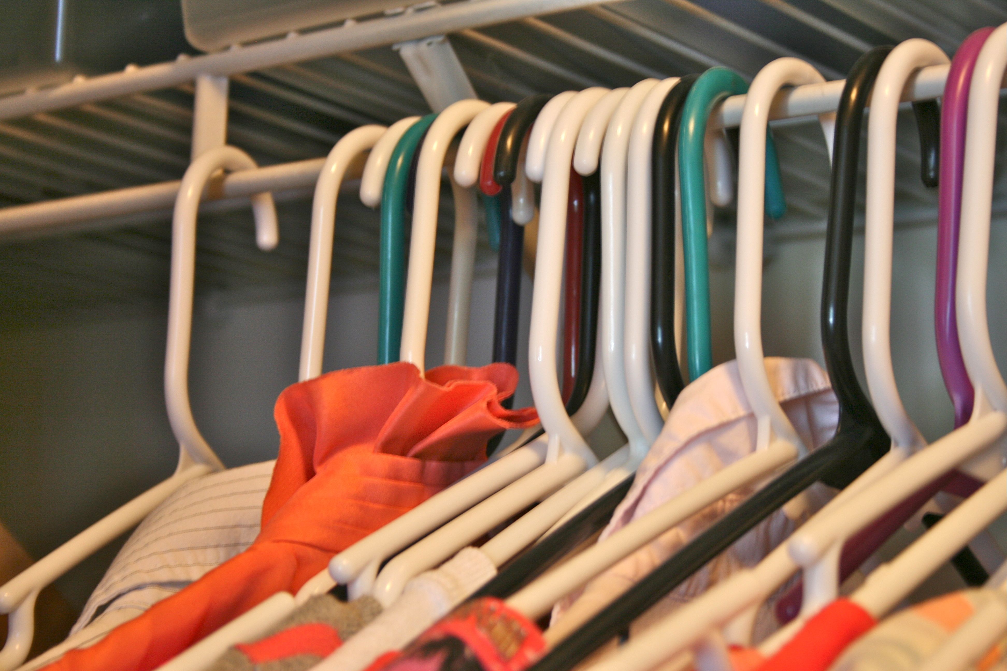 Have you guys seen on Pinterest or heard this tip from a friend? Essentially, to make the most of your clothing, you turn all of the hangers backwards and then, as you wear something, you turn the hanger right-ways. That way at the end of the season, you’ll know what clothes you didn’t utilize by seeing their hangers still turned backwards – Time to get rid of them. I attempted this at one point (as you can see in the photo above and below), but eventually gave up. I have a pretty good handle on what piece make me feel good and what don’t. It was just about finding the motivation to actually get rid of things that I’d been holding onto for years.
