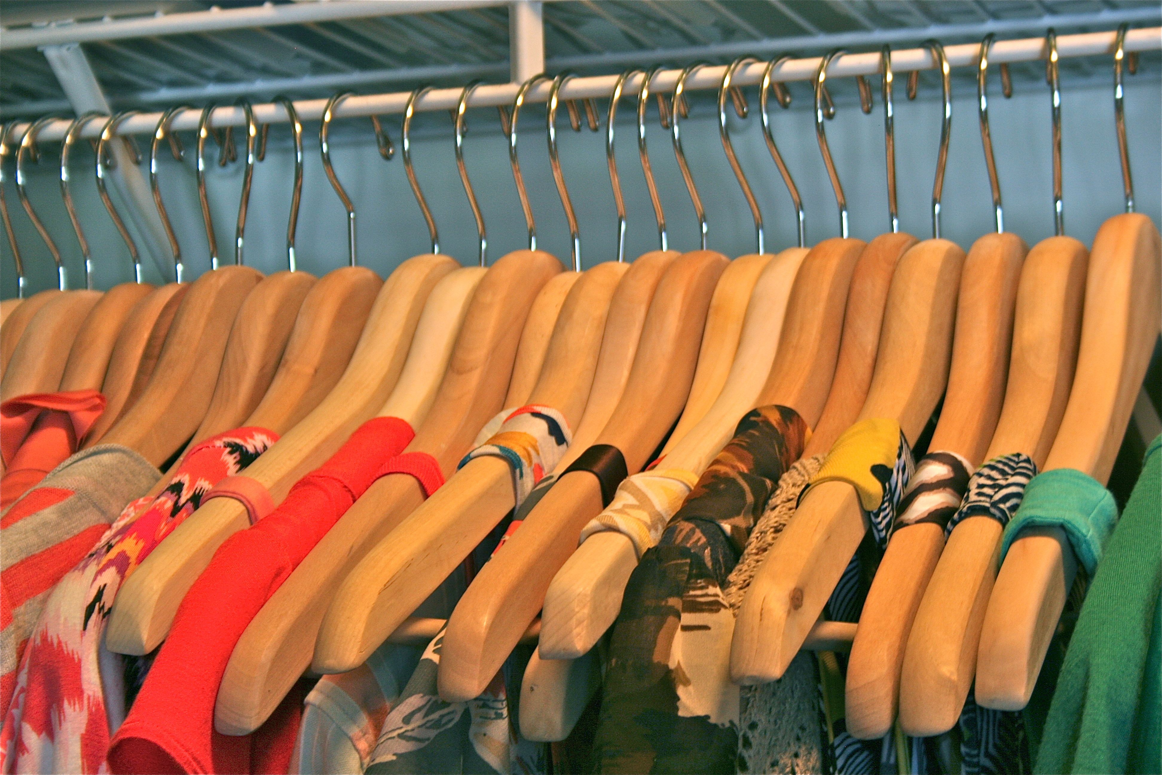 Another thing I decided to do was find ways to amp up the display in my closet, right on down to the hangers…After seeing these two Pinterest images of clothing hung on natural wood hangers and how it gave it a high-end boutique look, I knew I had to upgrade.