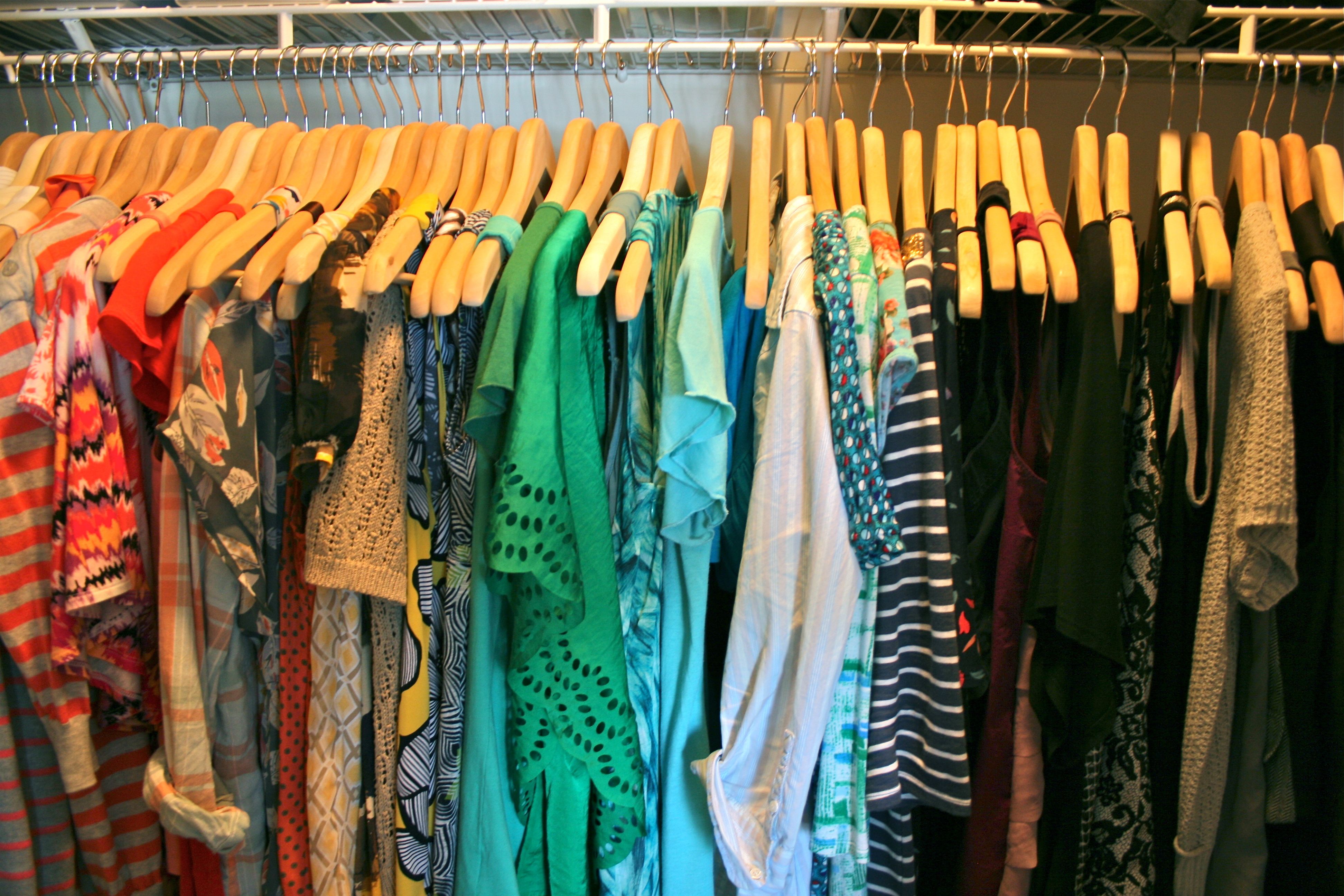 My motivation? Upgrading the hangers. I eventually found my collection on Ebay for about $50 shipped for 80 wooden hangers (with pant bar in the middle). I knew that 80 wouldn’t be enough for the amount of clothes I had, but figured it would be that motivator for purging that I was looking for – Only the best and most important pieces would get hung back up in the closet, while the rest would get consigned.