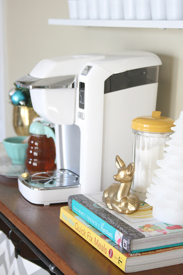 I even tried it back in its original spot in front of the chalkboard calendar – But in the end, it worked the best in all angles behind where the barn doors were so off they went to the garage to be put up whenever we need them, or to come with us to the new house in a couple of years. I actually really loved it centered behind the dining room table, but it would have meant scooting the dining room set too far out into the flow of traffic and making it off-center beneath the light fixture. The final placement was the best option for everything.