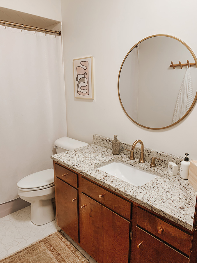 So this was the first spot, off to the side on the left wall. But it was only the first. I tried several other placements just to be sure before officially taking down the barn doors. Thank goodness the cabinet has those little wheels on the bottom, making for easy rotation across the room. Here are all of the places we tried it: