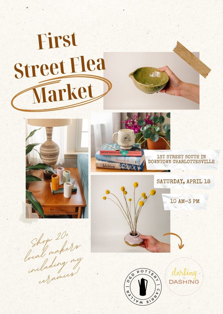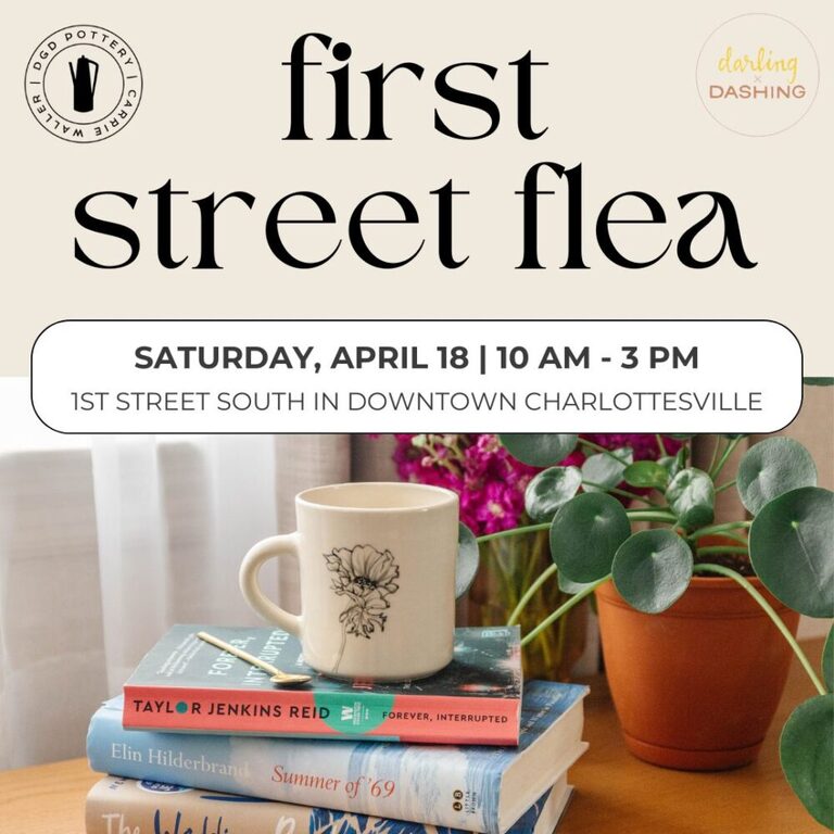 Popping in to let you know that, if you’re local, you can shop my handmade pottery in person this weekend in Charlottesville, Virginia! I’ll be taking part in the First Street Flea event hosted by Darling x Dashing Boutique and Old Flame Secondhand & Vintage on Saturday, April 18, from 10-3pm. There will be more than 20 crafters, artisans, and vintage vendors, plus baked goods to enjoy, too, so I think it’s going to be a blast! We’ll be set up on the downtown mall alongside Darling Boutique on 1st Street South.