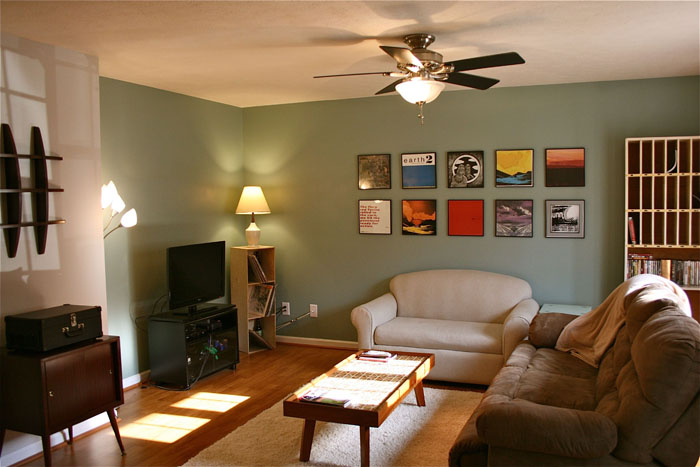Much warmer and unique…But don’t worry about the original black TV stand! It’s now in the garage serving as the perfect place for John’s stereo (he cranks that up when working on cars). Waste not 🙂