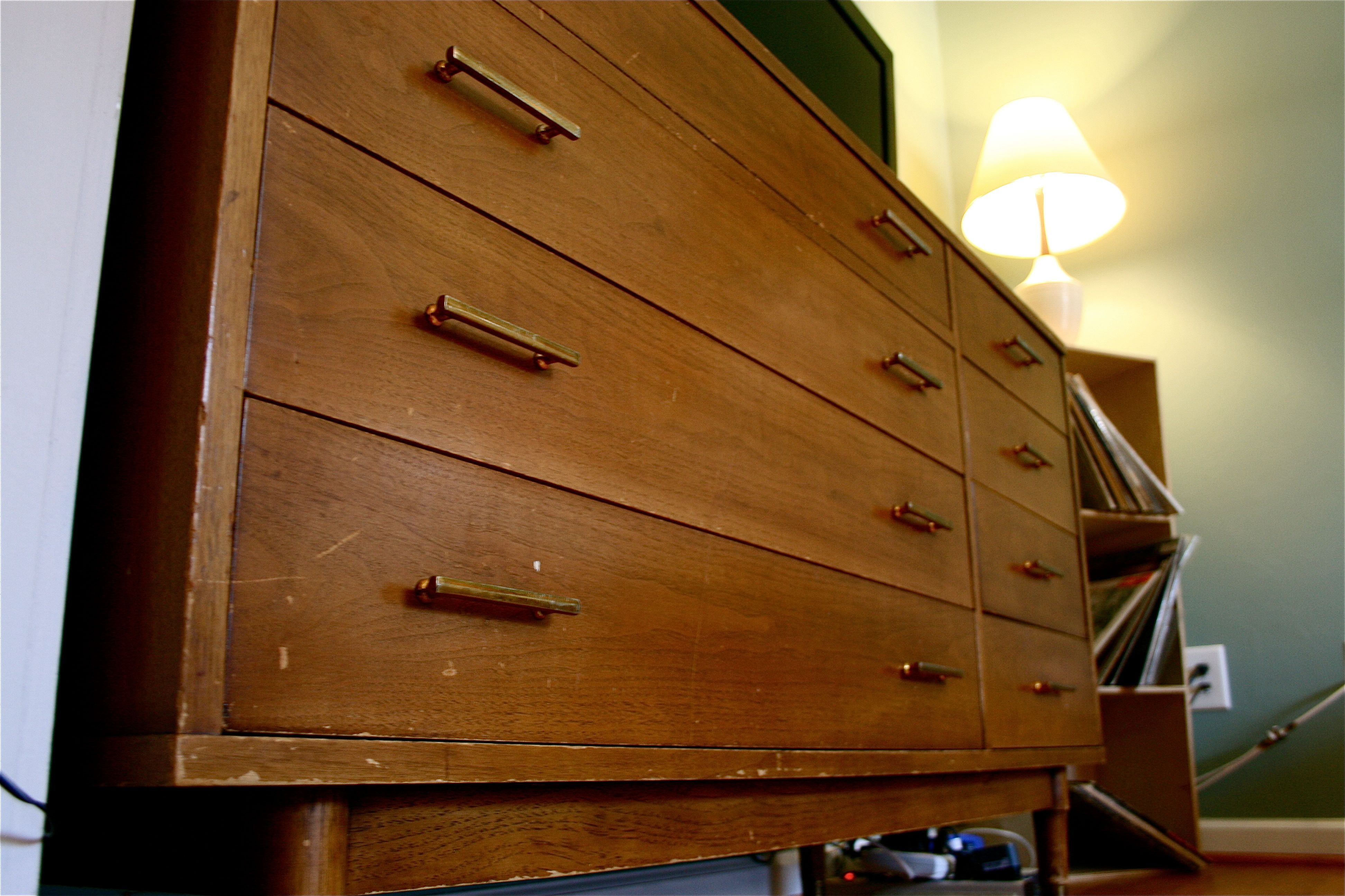 I’m glad that we persisted in our search and landed upon this $95 mid-century modern dresser – We are so happy that we didn’t give up!