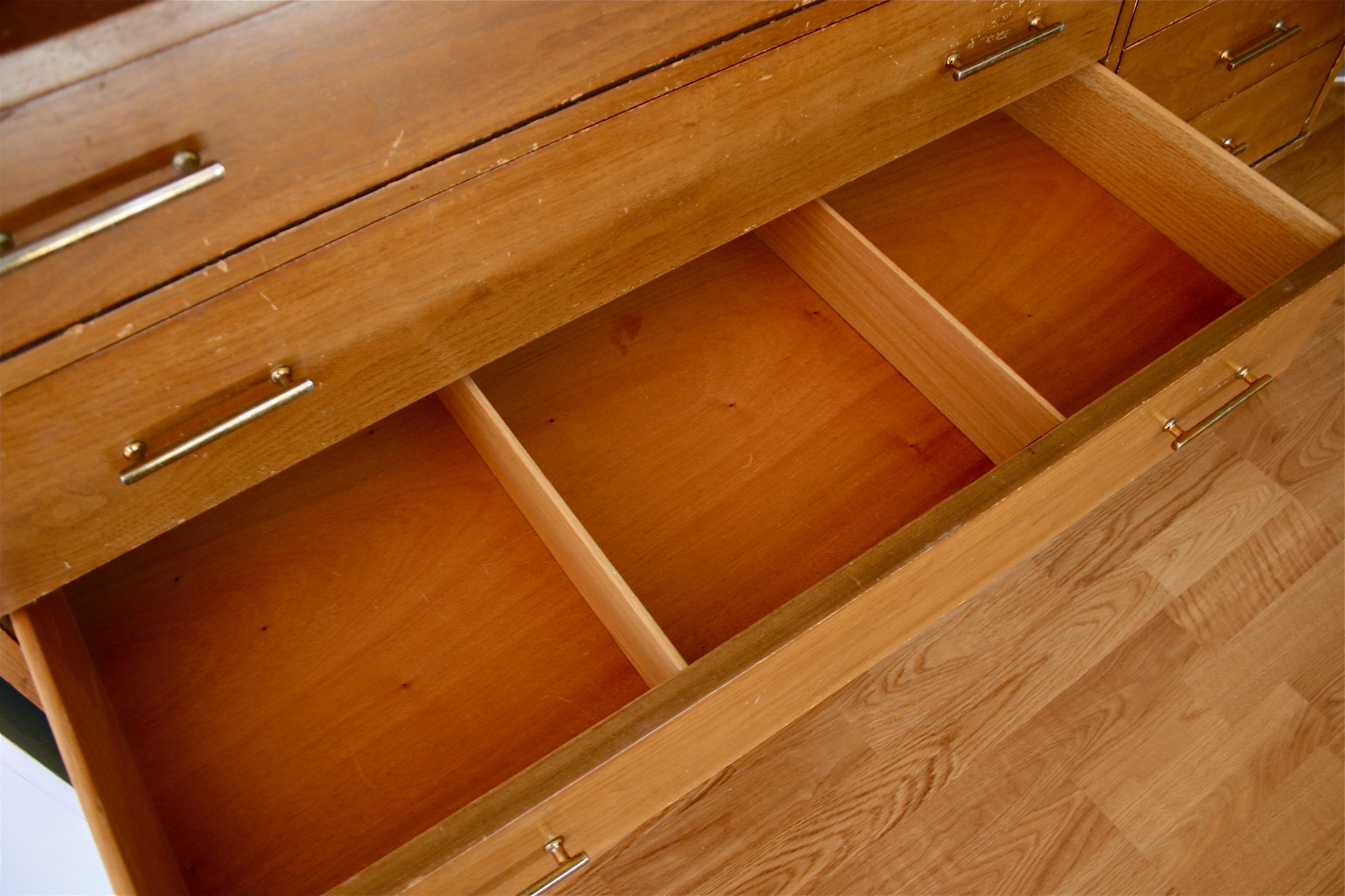 A few of the drawers even have handy wooden divers in them, which has my Type A brain in overdrive thinking of all the organization we can accomplish…