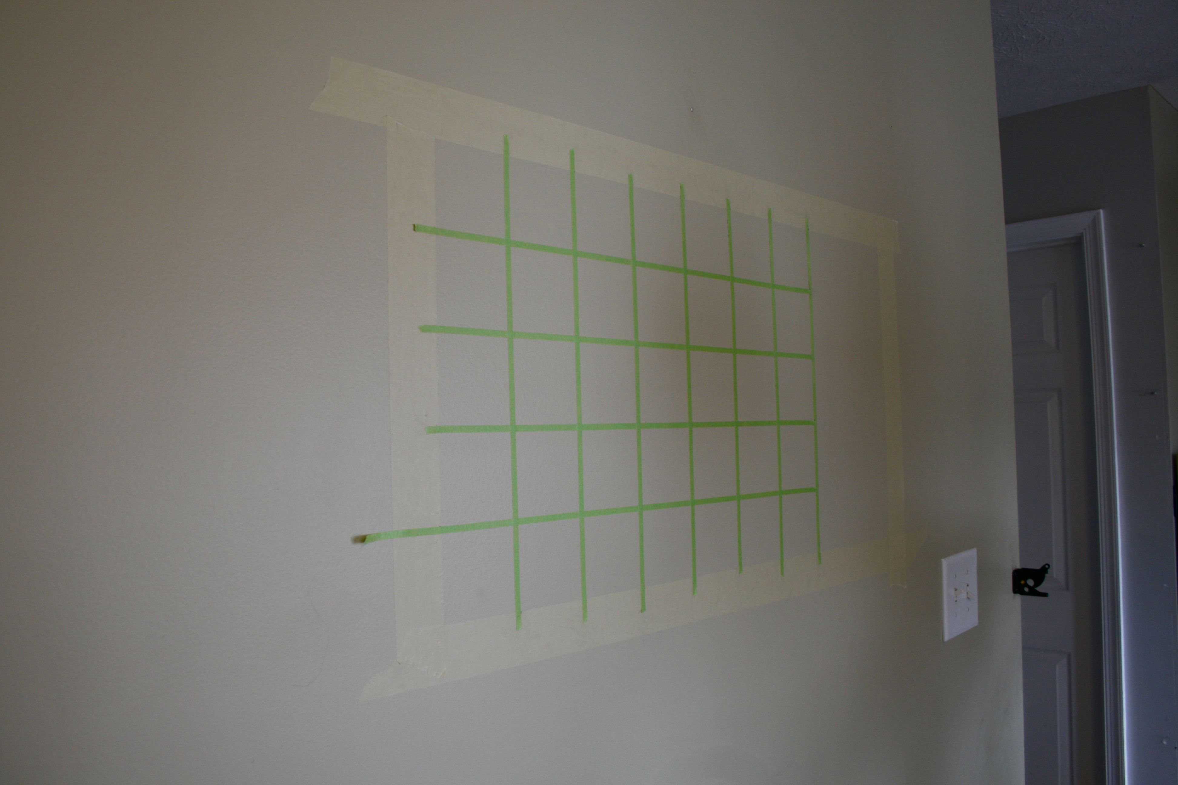 We decided on 3×3″ “daily” squares and a 7×16″ “memo” section. So, after factoring in the 1/4″ masking tape every few inches, we came up with a 16×22.75″ rectangle.