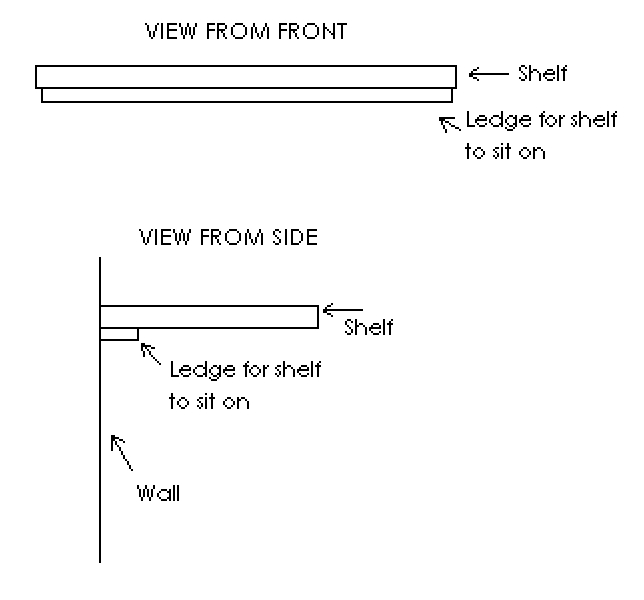 When we found ourselves at Lowe’s last Sunday to pick up a new fan for the living room, we also bought wood for a shelf design I’d been throwing around in my head for about a week. Here’s a rough digital sketch of my idea: