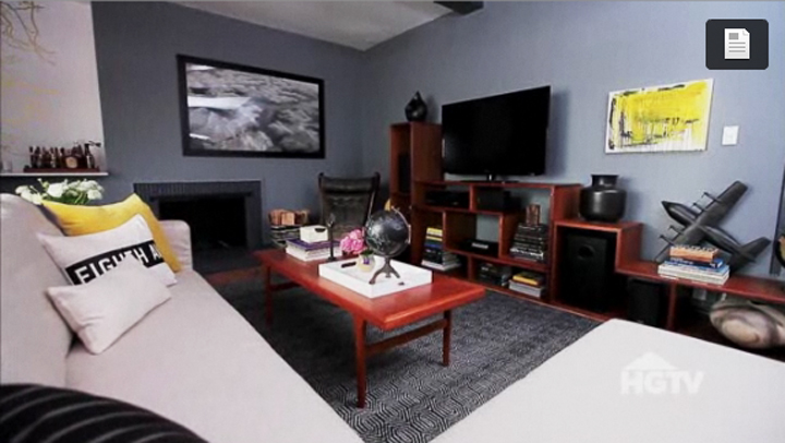 The idea came to me to use it after seeing last weekend’s new episode of “Secrets from a Stylist”, where Emily Henderson used a large black and white print as a focal point (seen below). All of her rooms have a midcentury vibe to them, so I knew the design element of a large-scale print would fit our 60’s decor too.