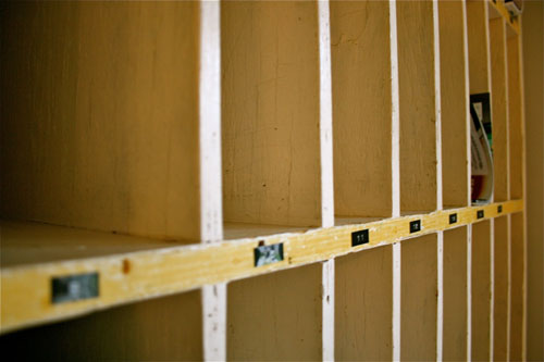 Or the time we stumbled upon this fabulous old shelving unit with mail slots in the basement of Estate Specialist in town: