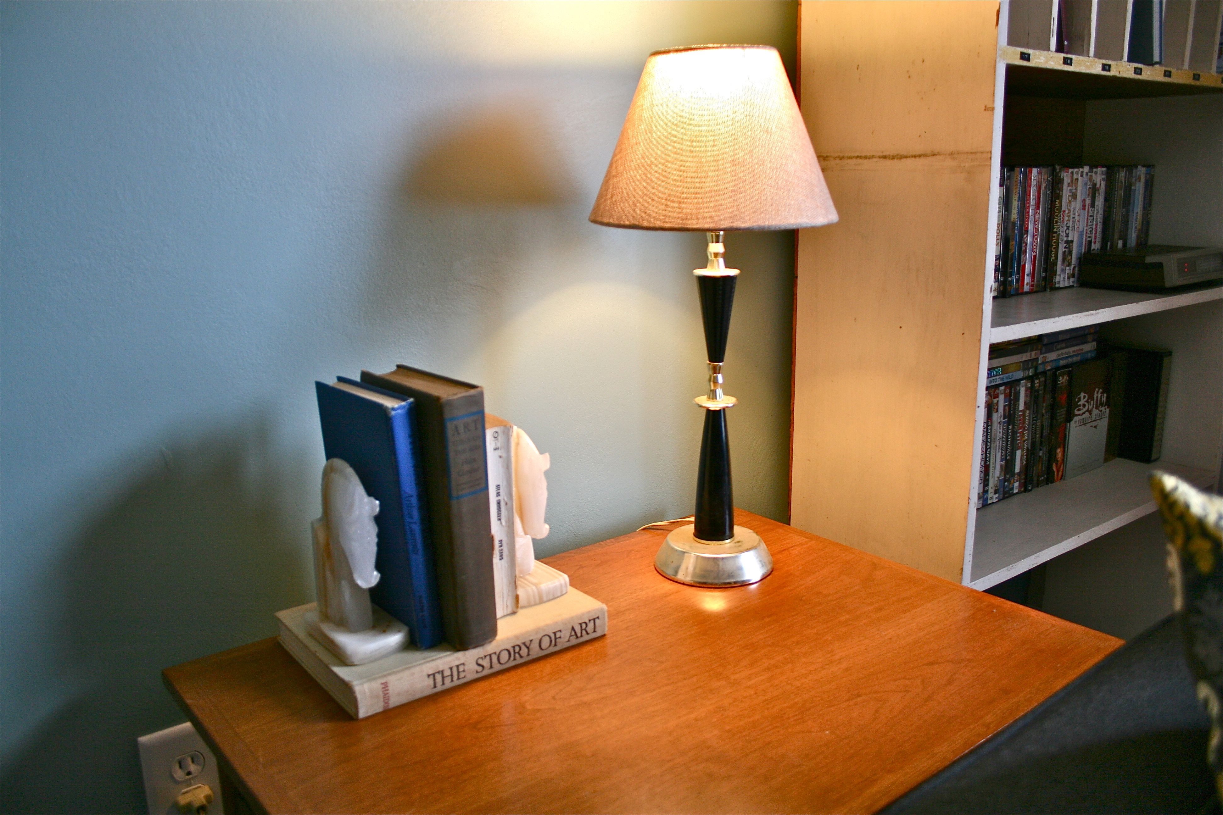I actually spotted these the last time I was at the thrift store, but I guess I needed a couple of weeks to mull it over in my head…I just couldn’t pass the pair up a second time around. They are surprisingly heavy (well I guess not that “surprising” since I already told you they are carved marble) and can easily hold their own against a few books standing on the new side table.