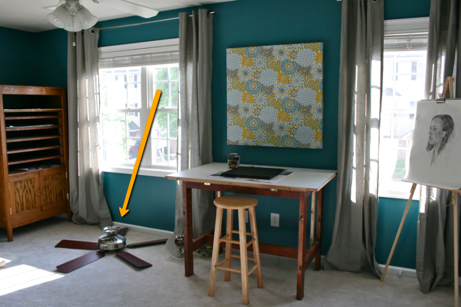 Speaking of, we already got some great use out of it. We FINALLY hung the displaced fan that’s been lying on the studio floor for the past month or so: