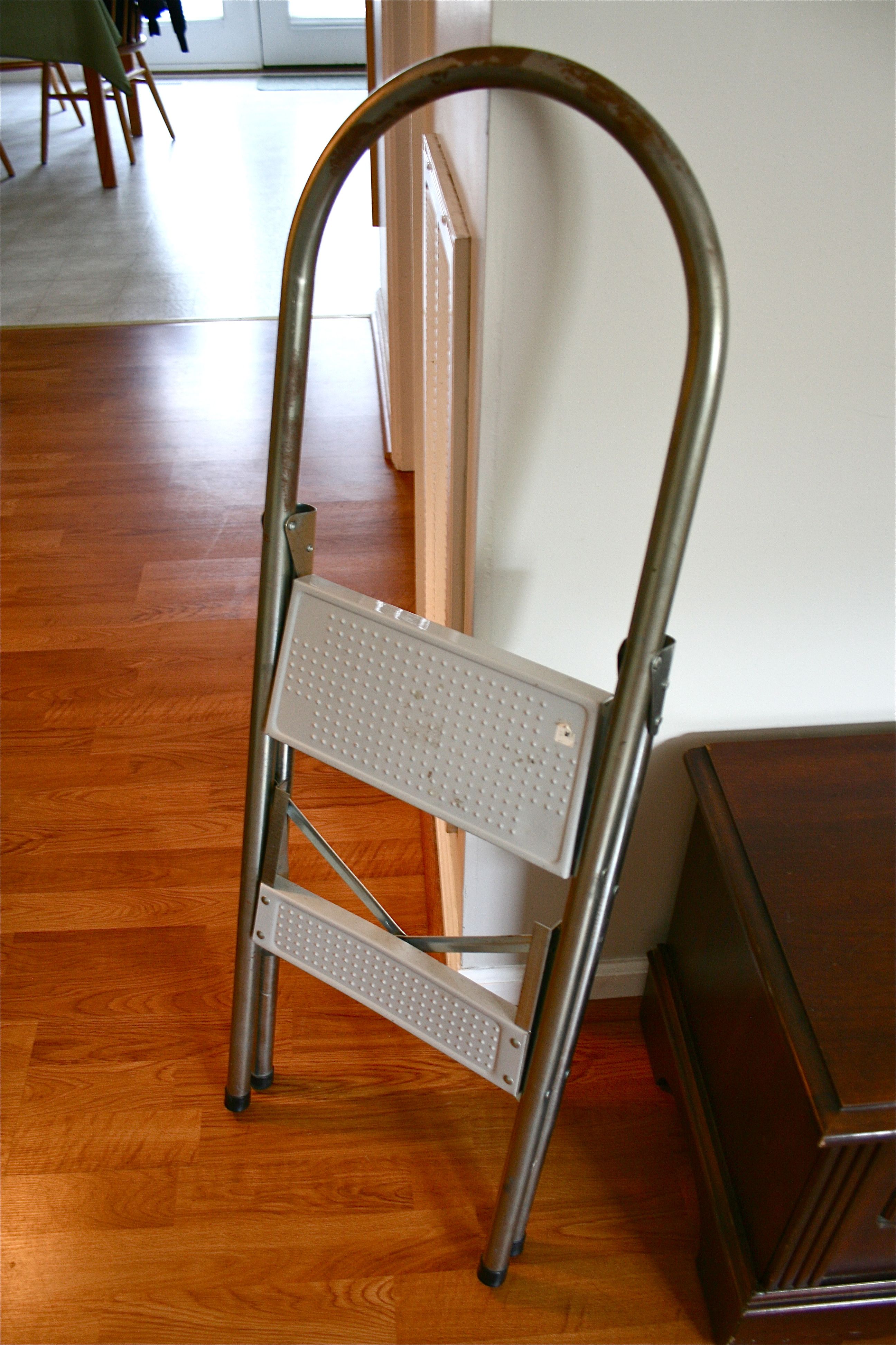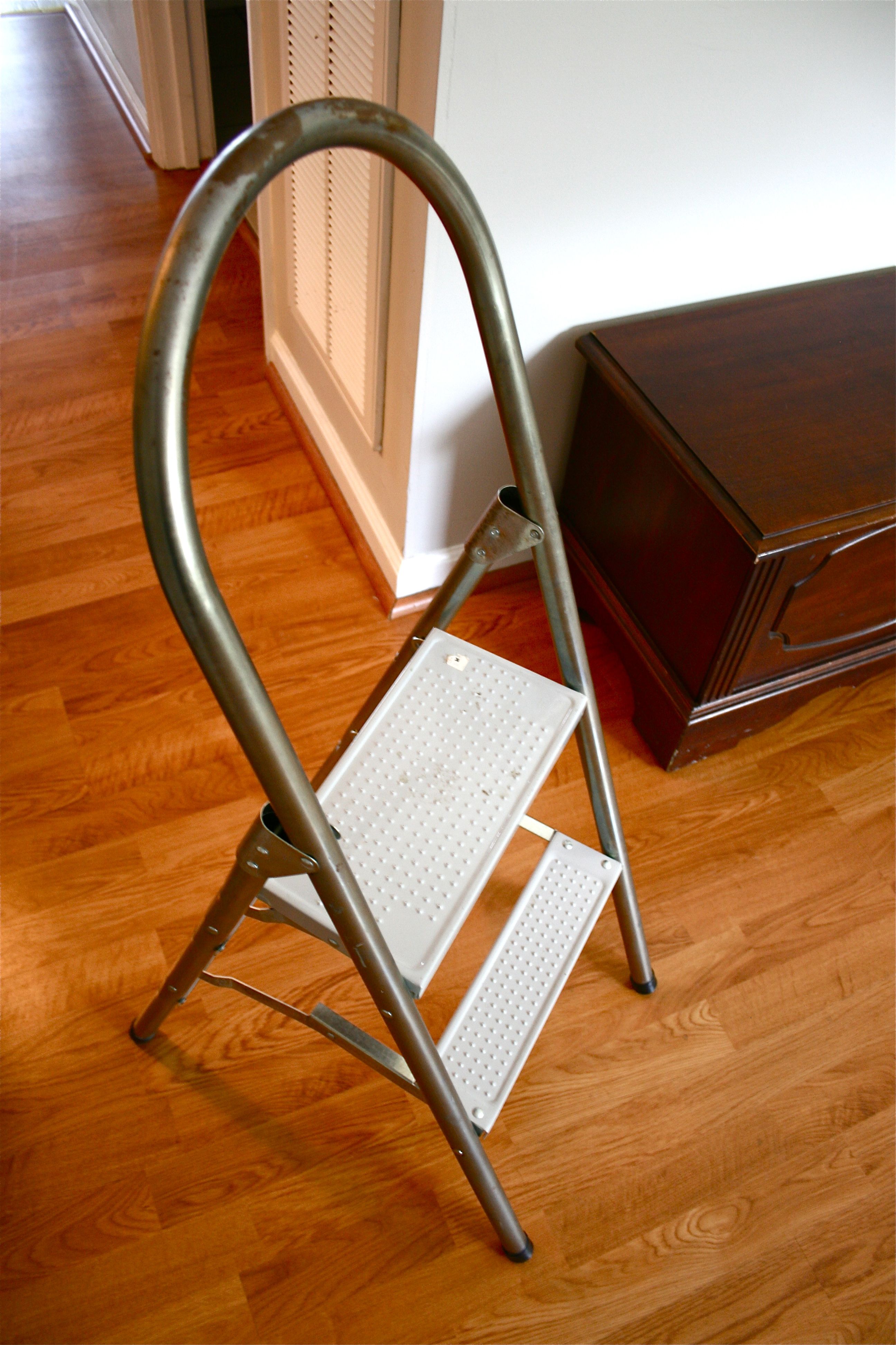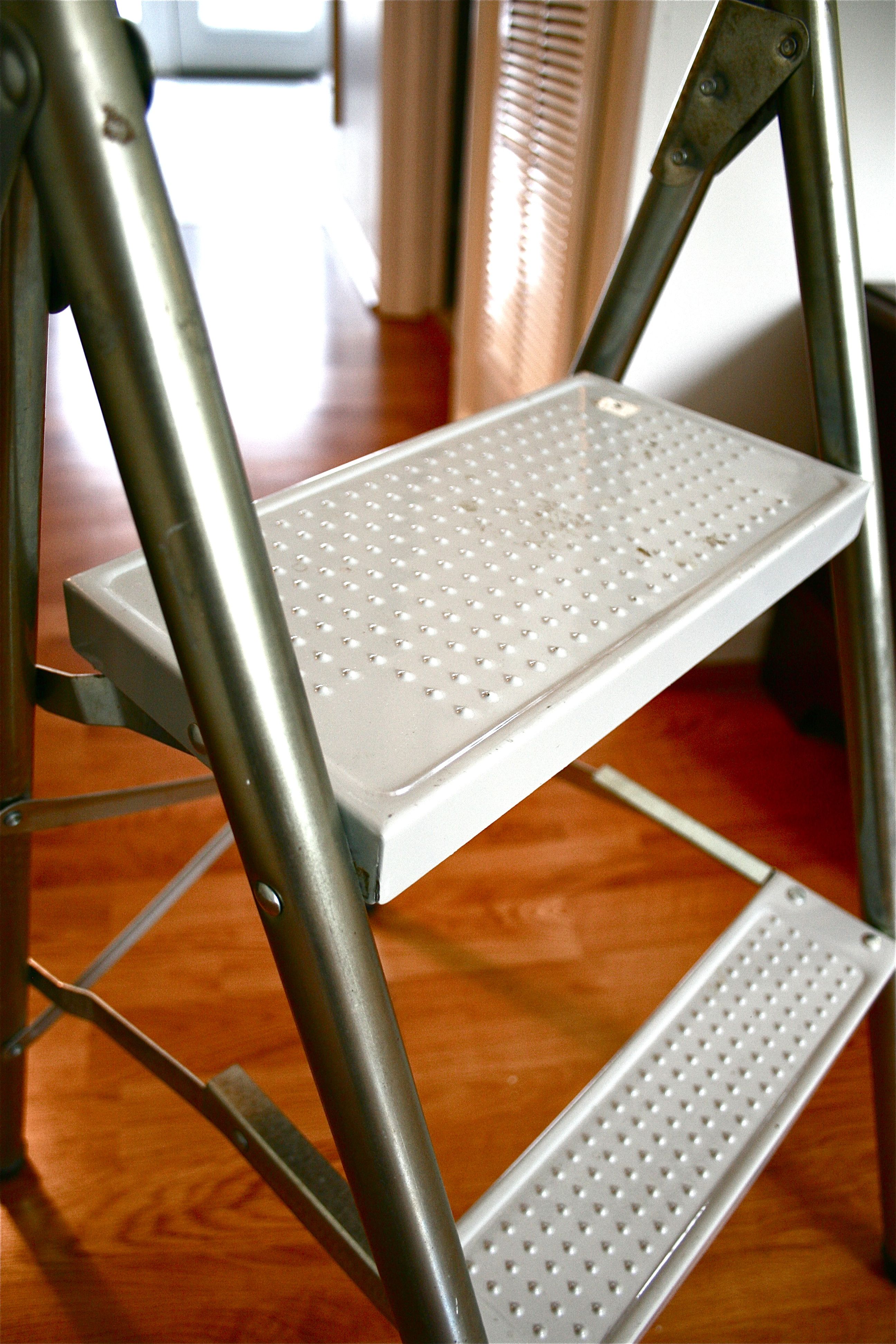 Thankfully though, we don’t have to resort to such ridiculous (and unsafe) means of reaching high wires anymore. This step-ladder is something that we’ve been needing for a while (we even mentioned needing it in the post linked to above), so it was meant to be when we stumbled upon it in the basement of Estate Specialist a couple of weekends ago.
