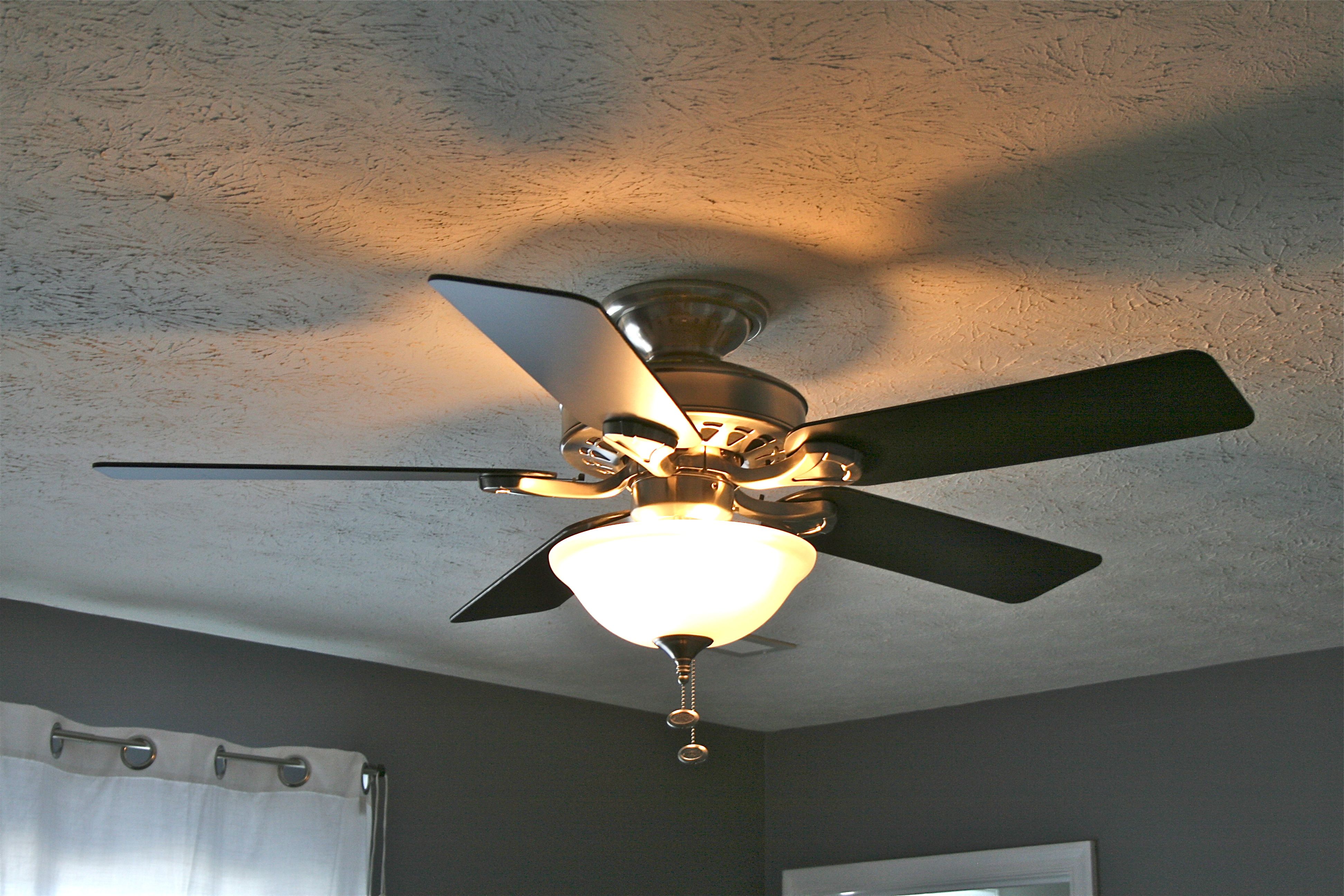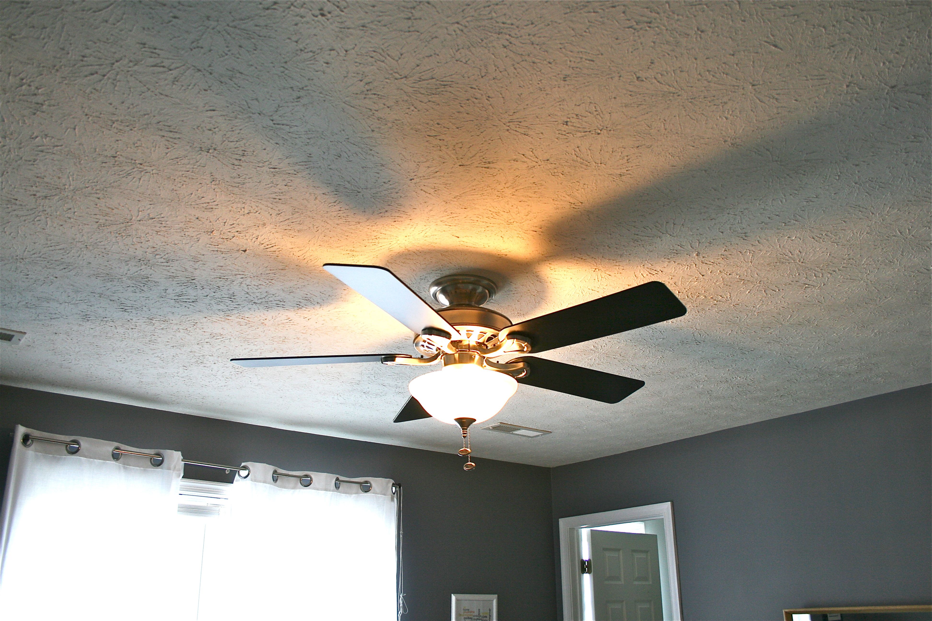 If you remember we took it out of the living room to put up our new fan – We decided to keep the old fan though and hang it in the master bedroom. There was already a standard white fan in there but it wasn’t quite as sleek and updated as this black one.