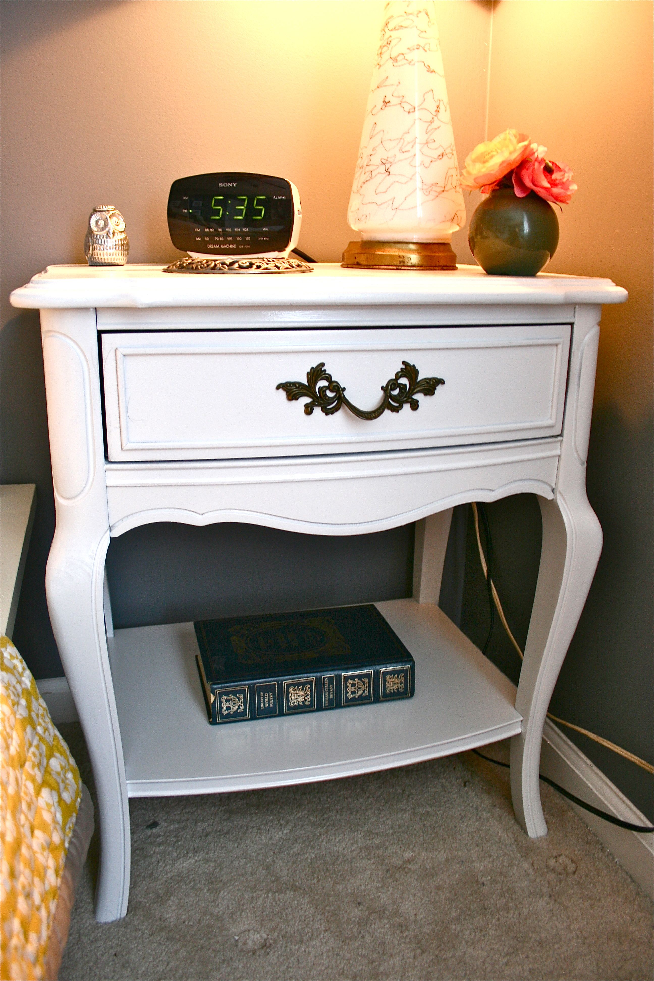 Hope you enjoyed our bedroom transformation! It only cost a little over $100 for the new quilt, pillow and spray paint nozzle (we already had the white spray paint and the table). Not too bad for so much change! I am personally loving our newly transformed oasis…