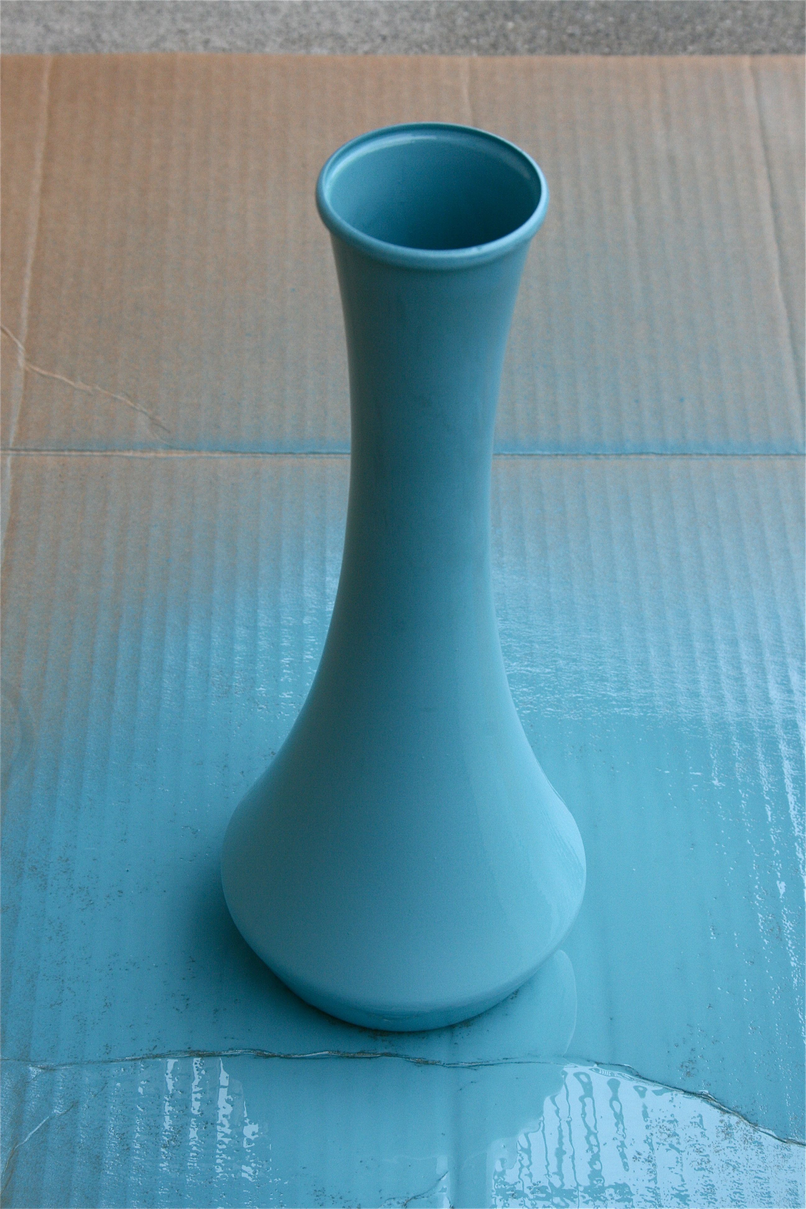 It was looking pretty dull…The plastic was dirty and stained and it needed some restyling BADLY, but I loved the shape of it – So out came the spray paint again! This time, I went with a more bold teal color (the same color I used on a lamp way back when) to really make it pop:
