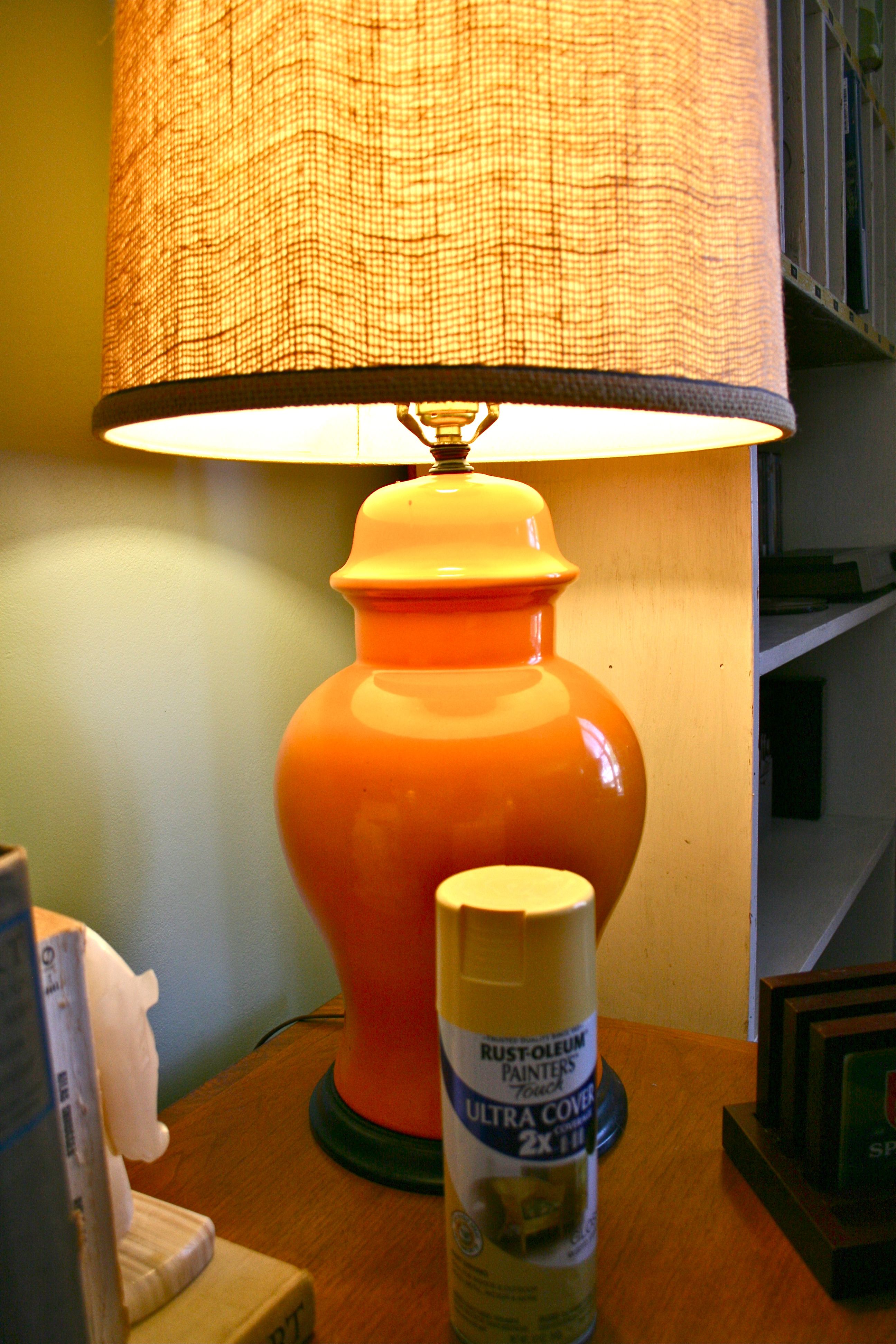 To be sure about my choice though, I put the can of paint right next to the lamp base to see if I could visualize the possible new color with the lamp shade. I could tell that the lighter color might actually wash it out a bit and make it look super top-heavy since the lamp shade is pretty dark…You may be able to see what I mean in these next couple of pictures.