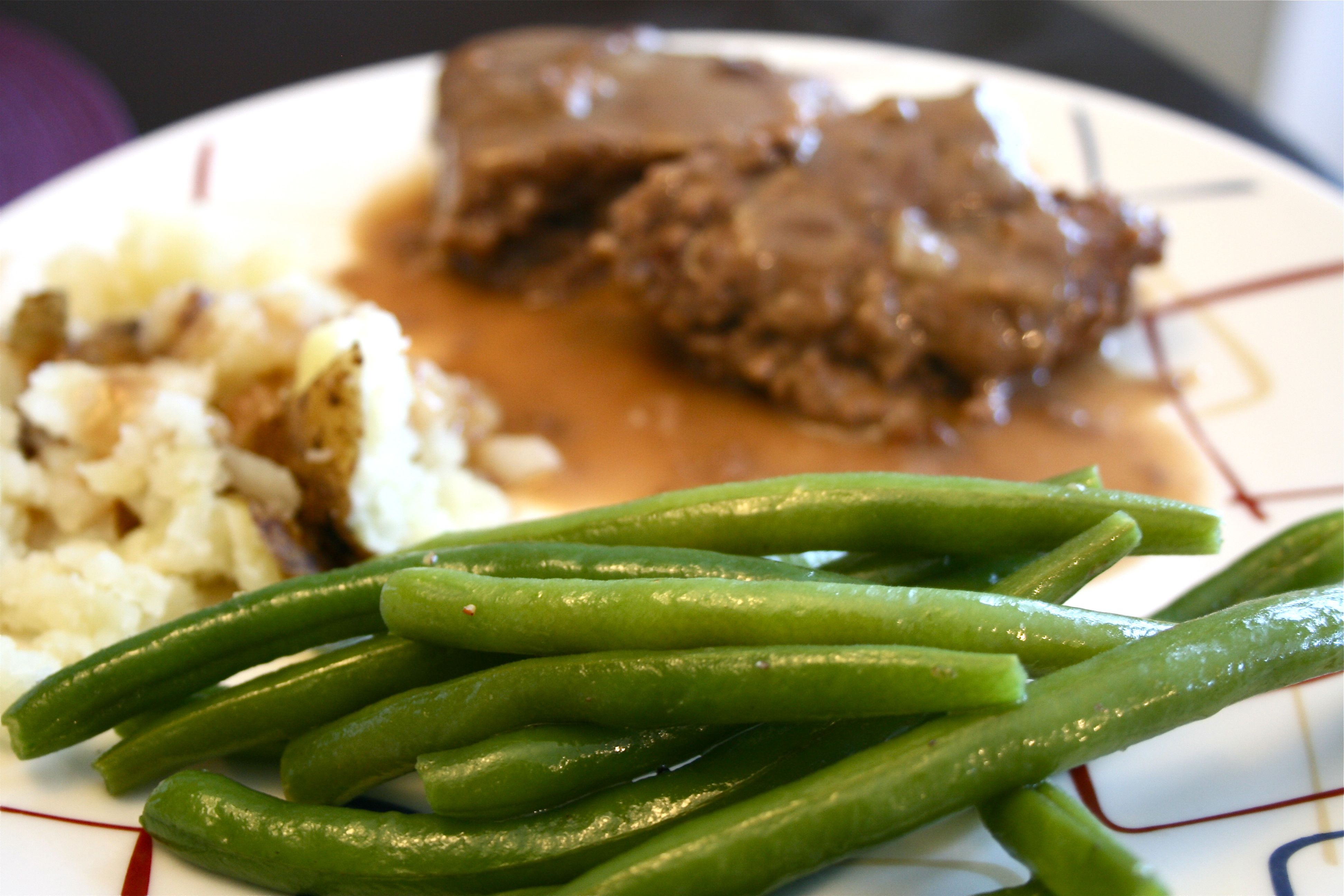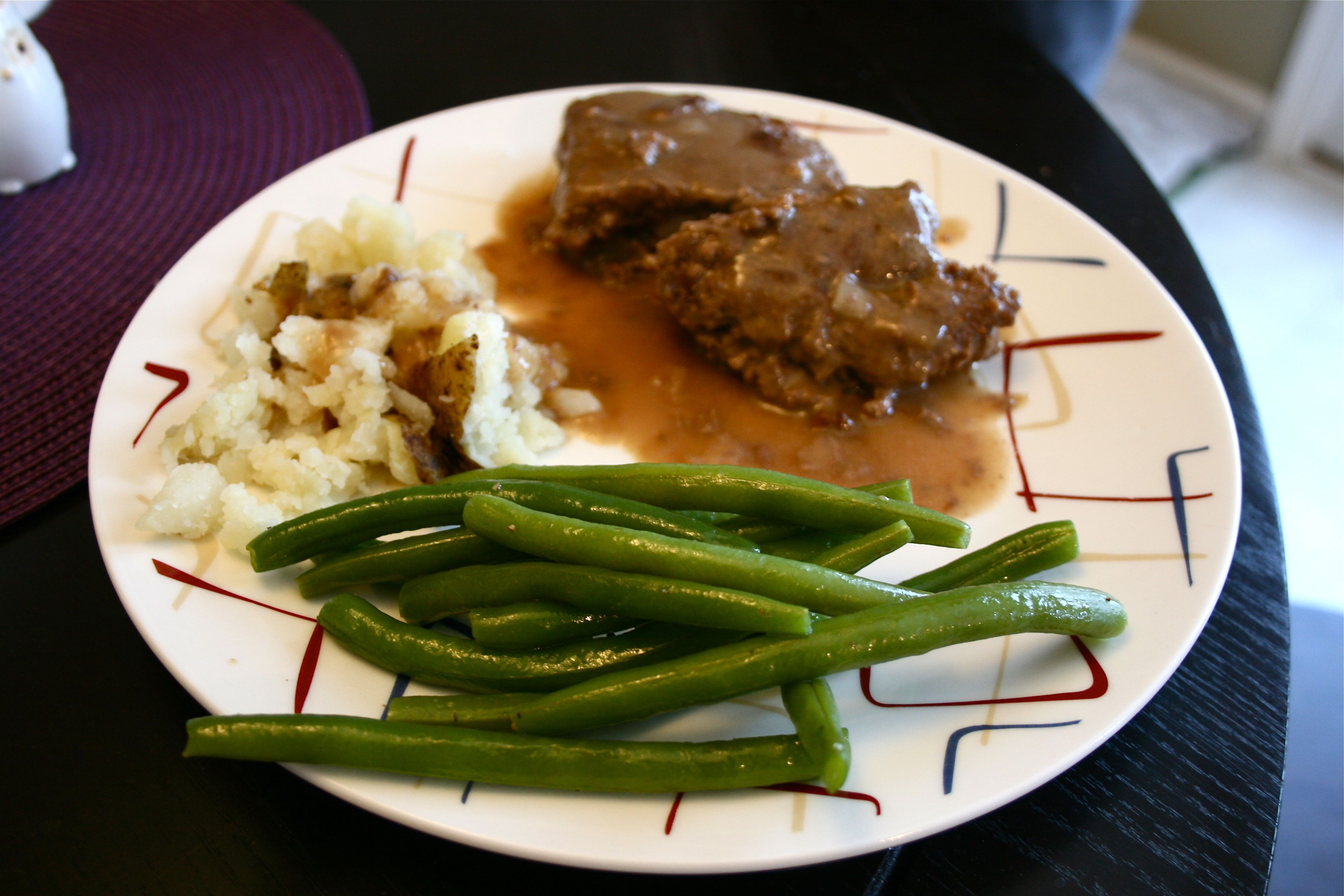 It was a Salisbury Steak recipe with baked potato and fresh green beans on the side. Yummmmmm…I gobbled that meal up in about 5 minutes flat.