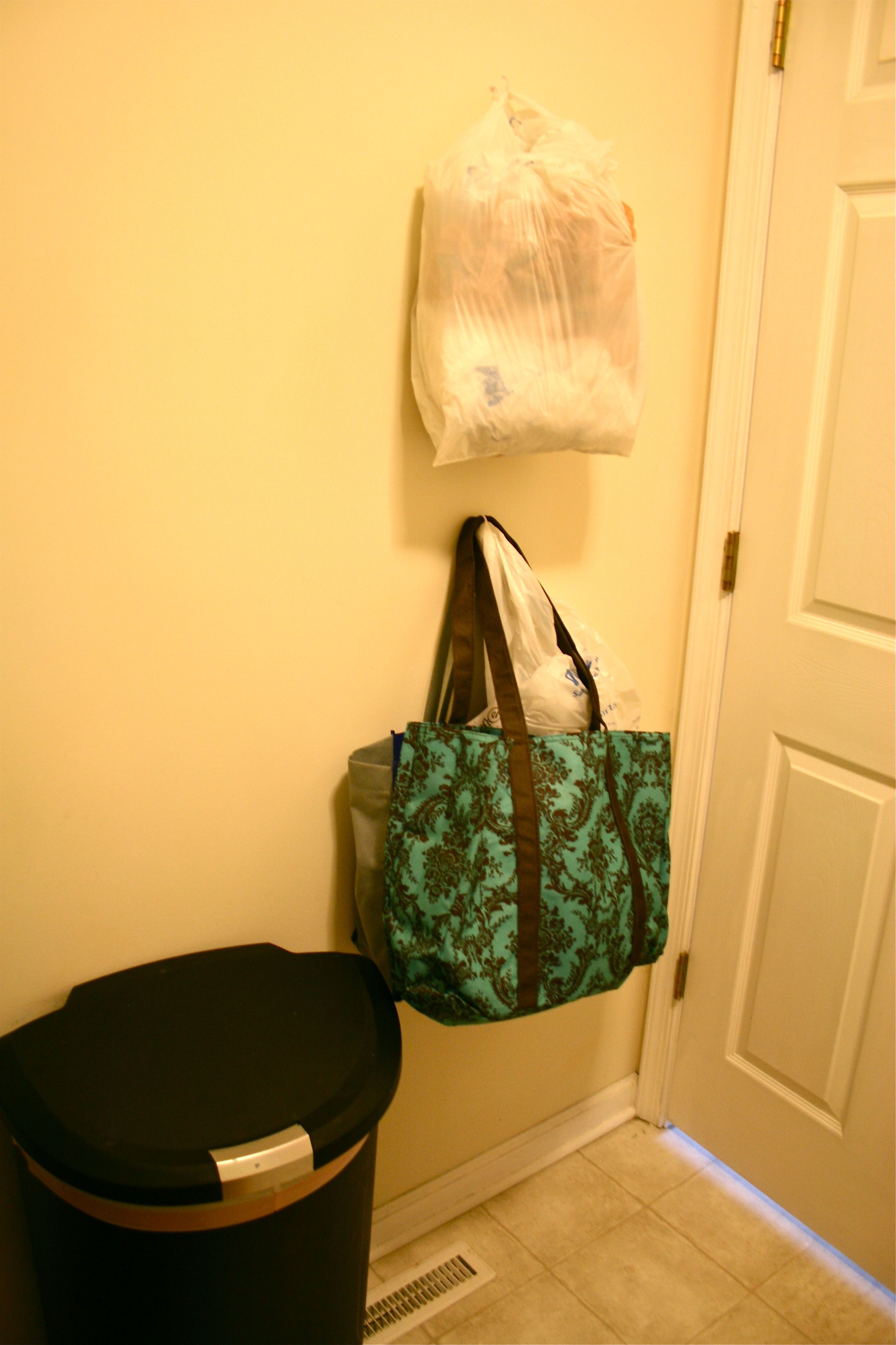 As I hinted in the post right before my small hiatus from the blogosphere, I decided to redo our laundry room. The main thing was to get all of the clutter under control – This room is our main go-to storage space for tools/hardware (I think we now officially have a supply of these on all three floors of the house…), dog stuff, candles, reusable bags, extra paper towels and appliance overflow from the kitchen, gardening supplies, camping supplies (??) and, of course, laundry stuff. I think the space was intended for a pantry, but it just works better for us to use it as household storage instead.