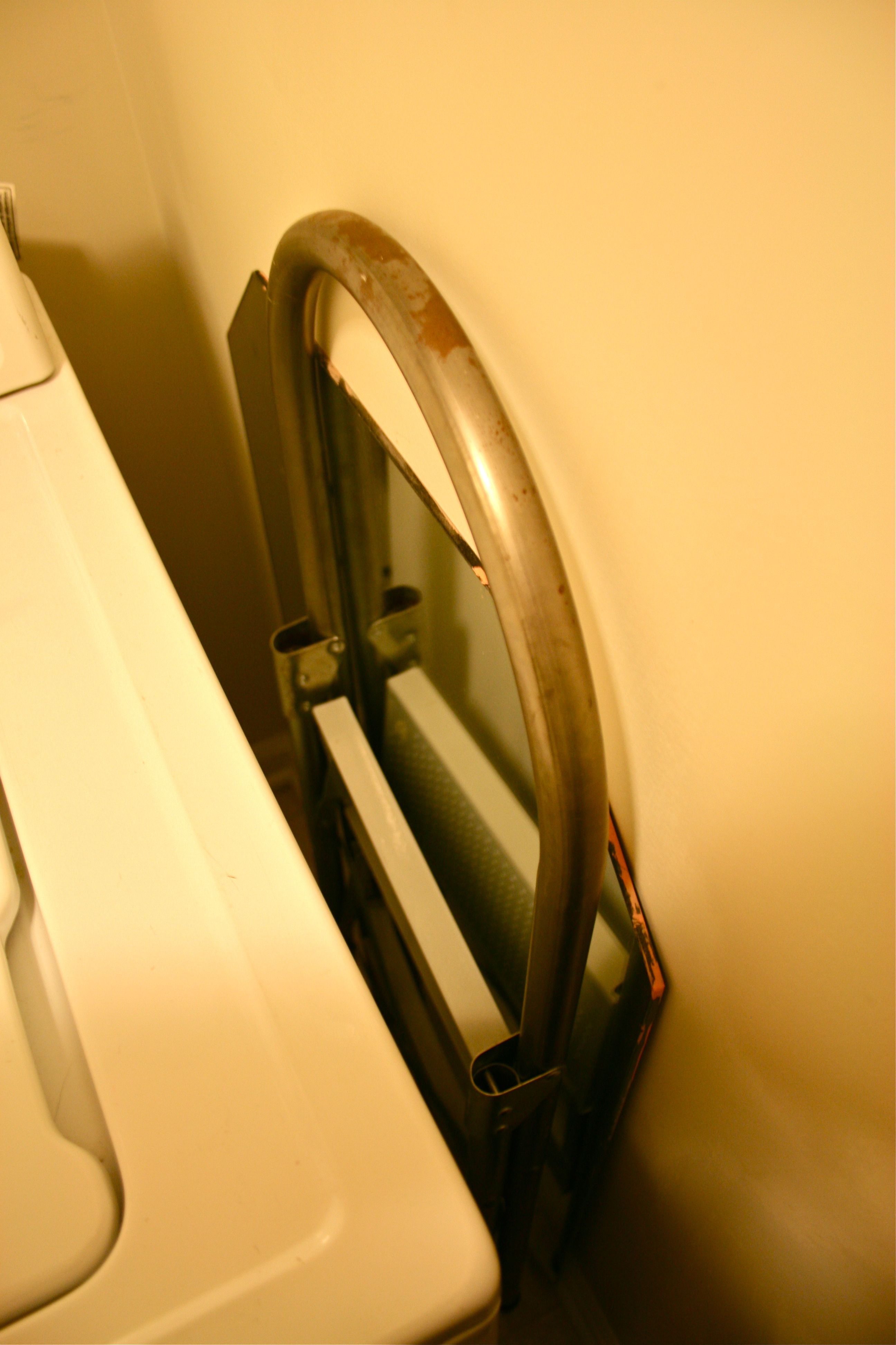 The photo above shows how we store our step ladder – But notice also the displaced mirror from this project lurking…Time to send that on its way to Restore! (Speaking of Restore, stay tuned for a Habitat-for-Humanity-related sidenote at the bottom of this post!)