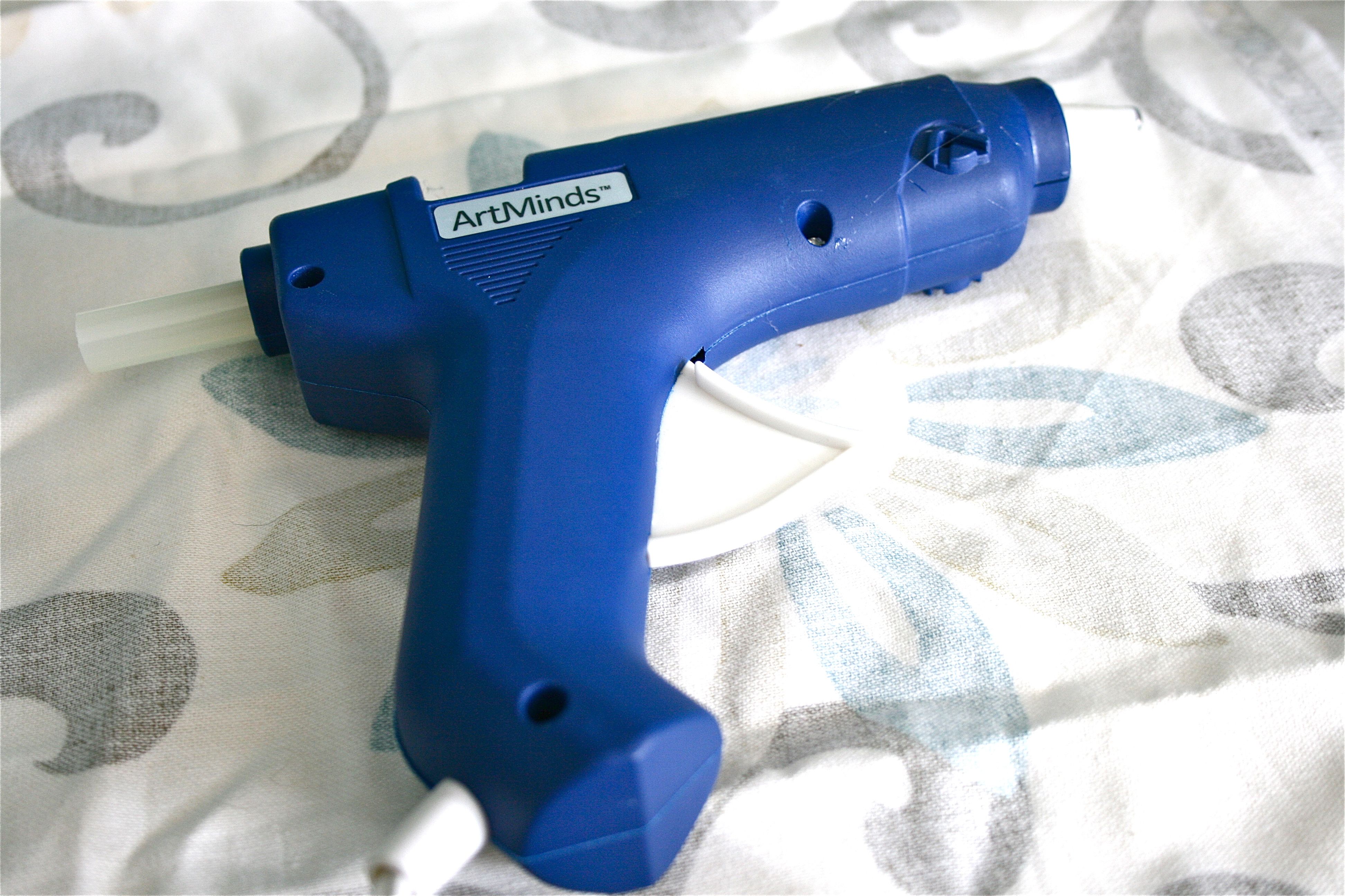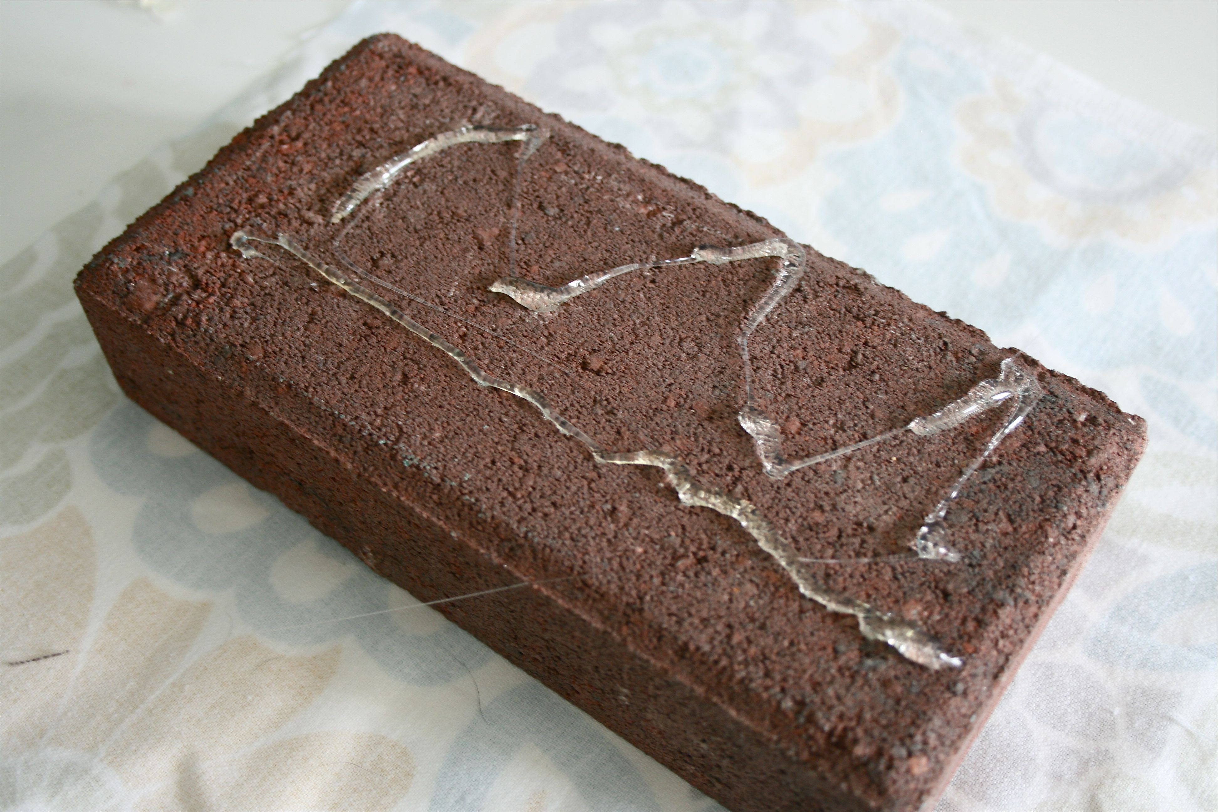 Starting over, I cut the fabric to fit and then laid the brick in the middle. Then I put a few squeezes of hot glue right on the surface of the brick, folded the fabric on top and pressed until it seemed secure.