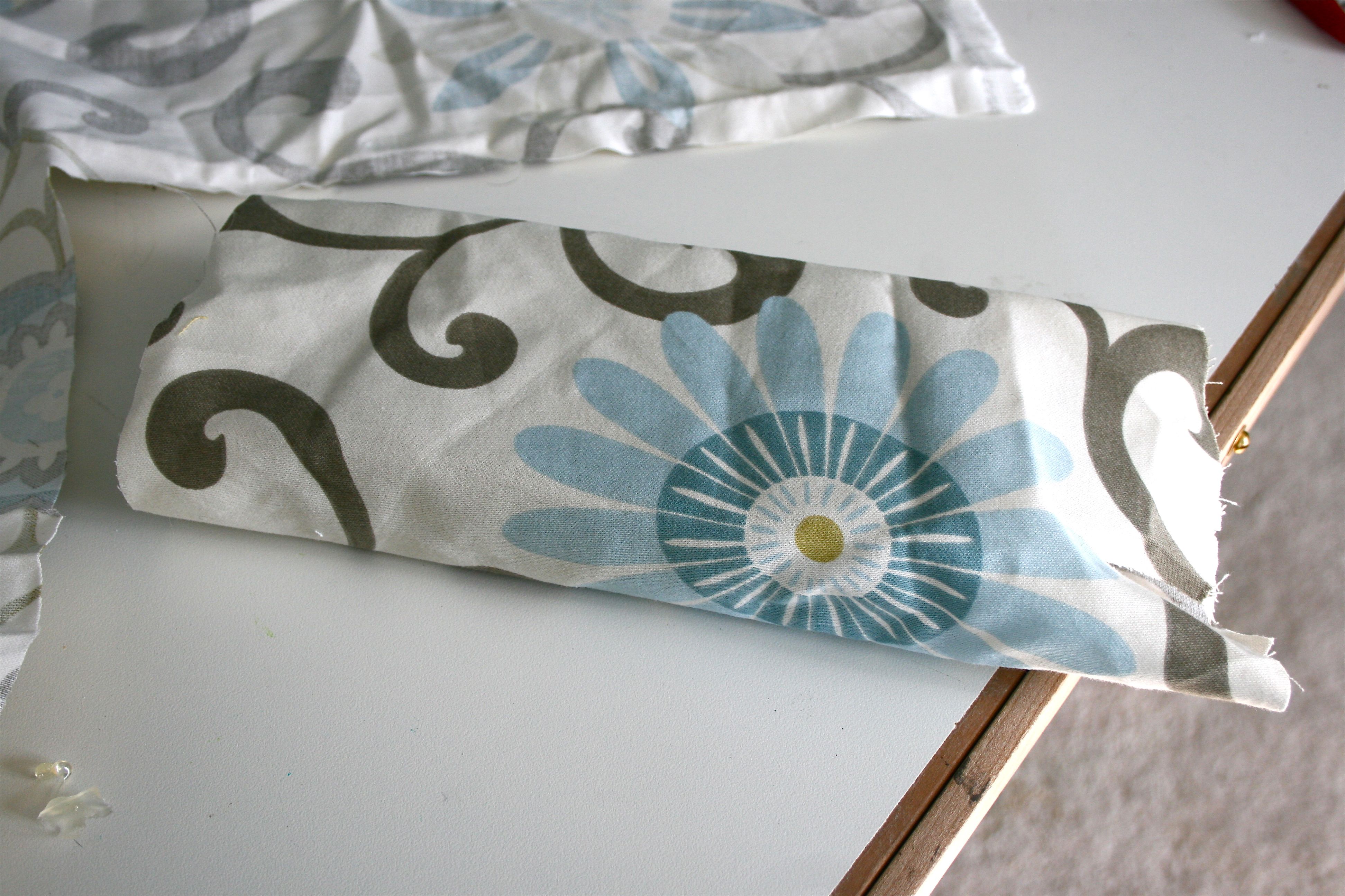 I got to work attaching the fabric to the brick!