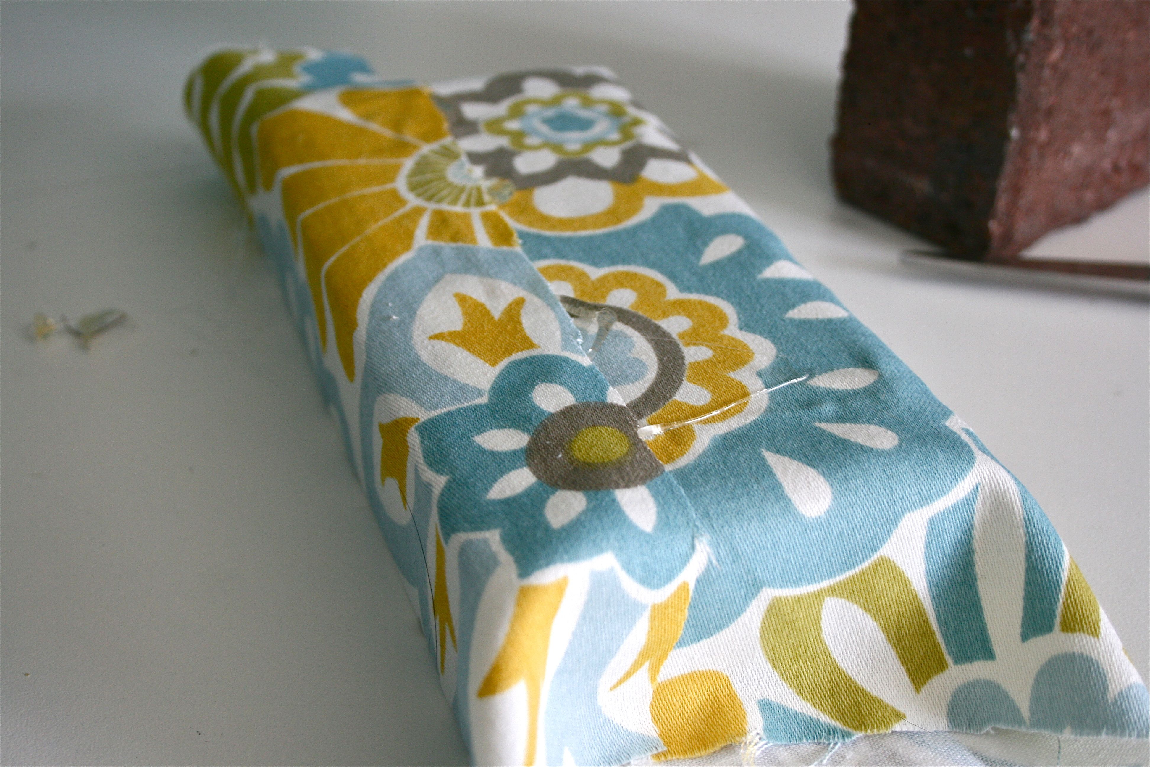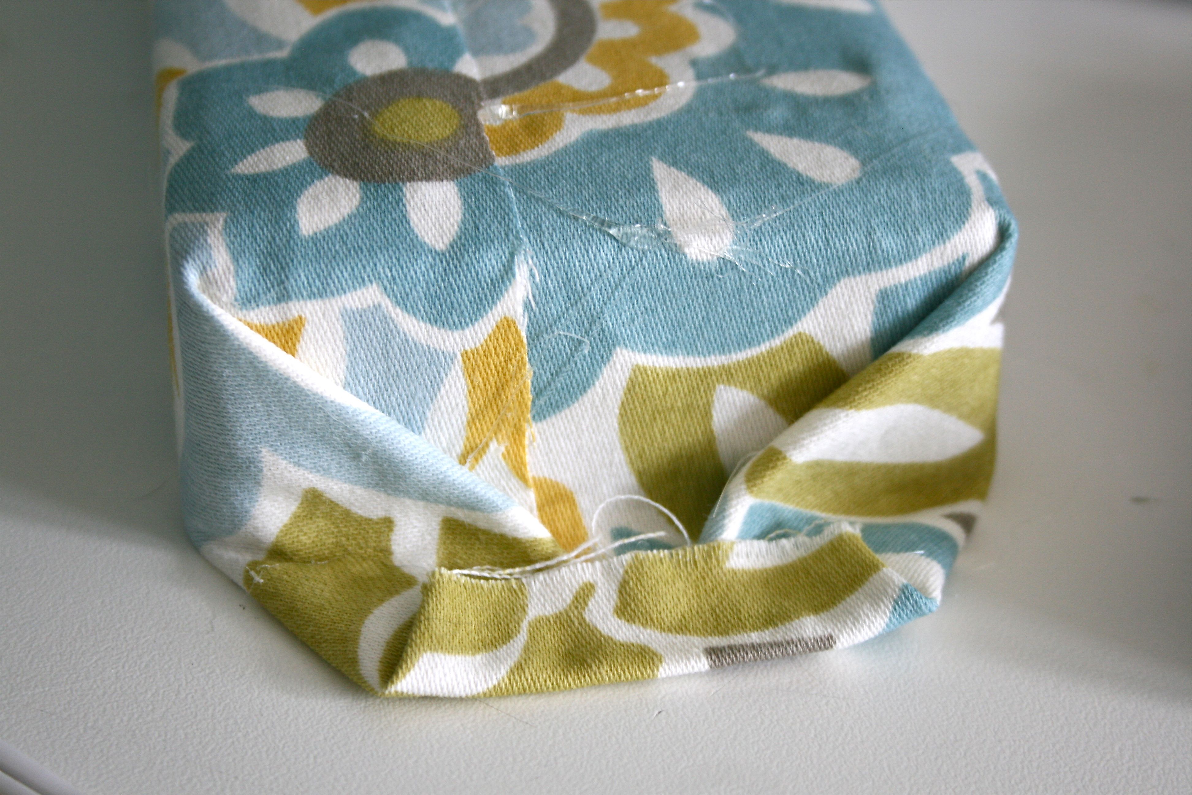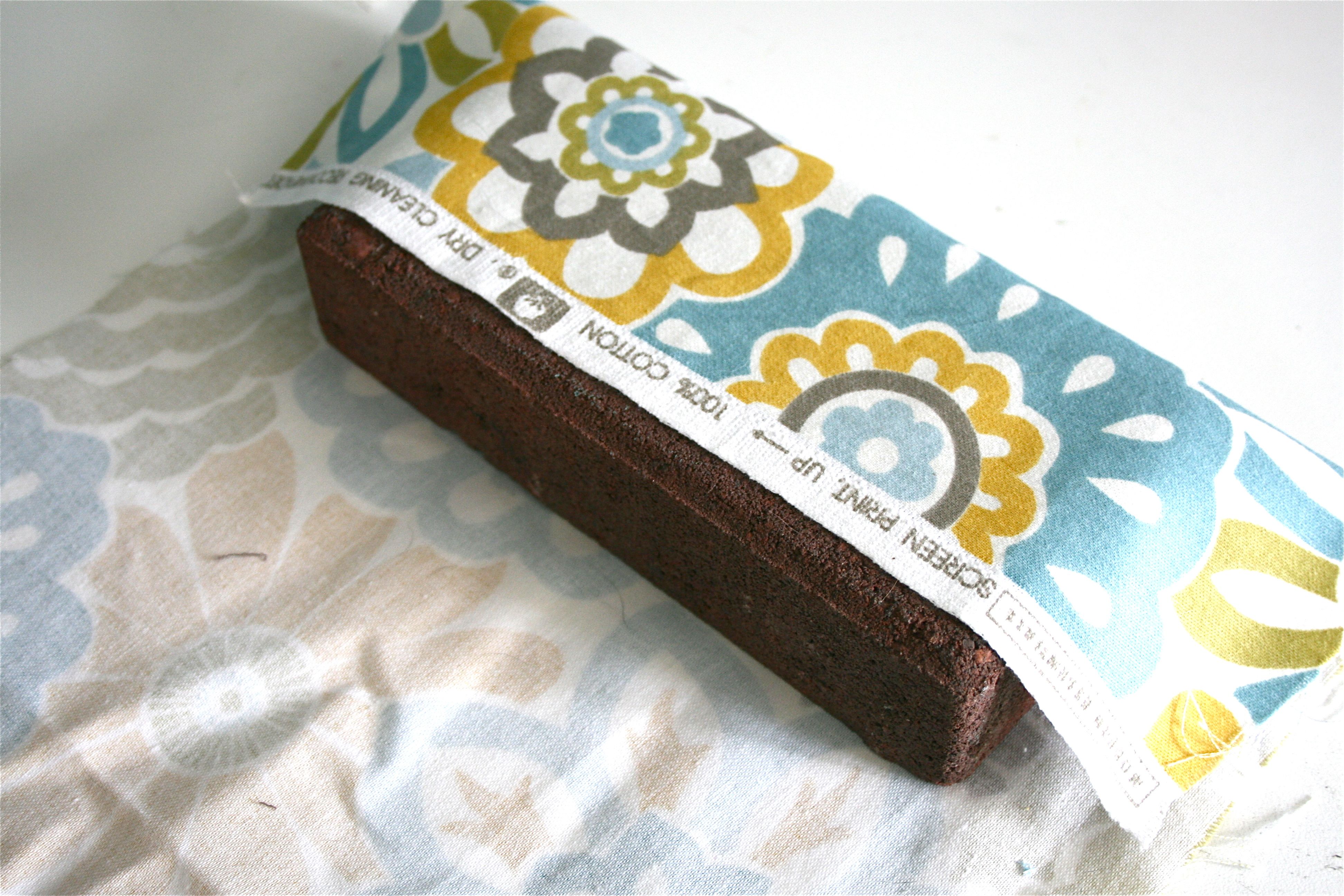 For the ends of the brick, I just folded the fabric over like you would the wrapping at the end of a gift box – My sister is SOOOOO good at this, I wish she had been around to help me…But mine came out okay!