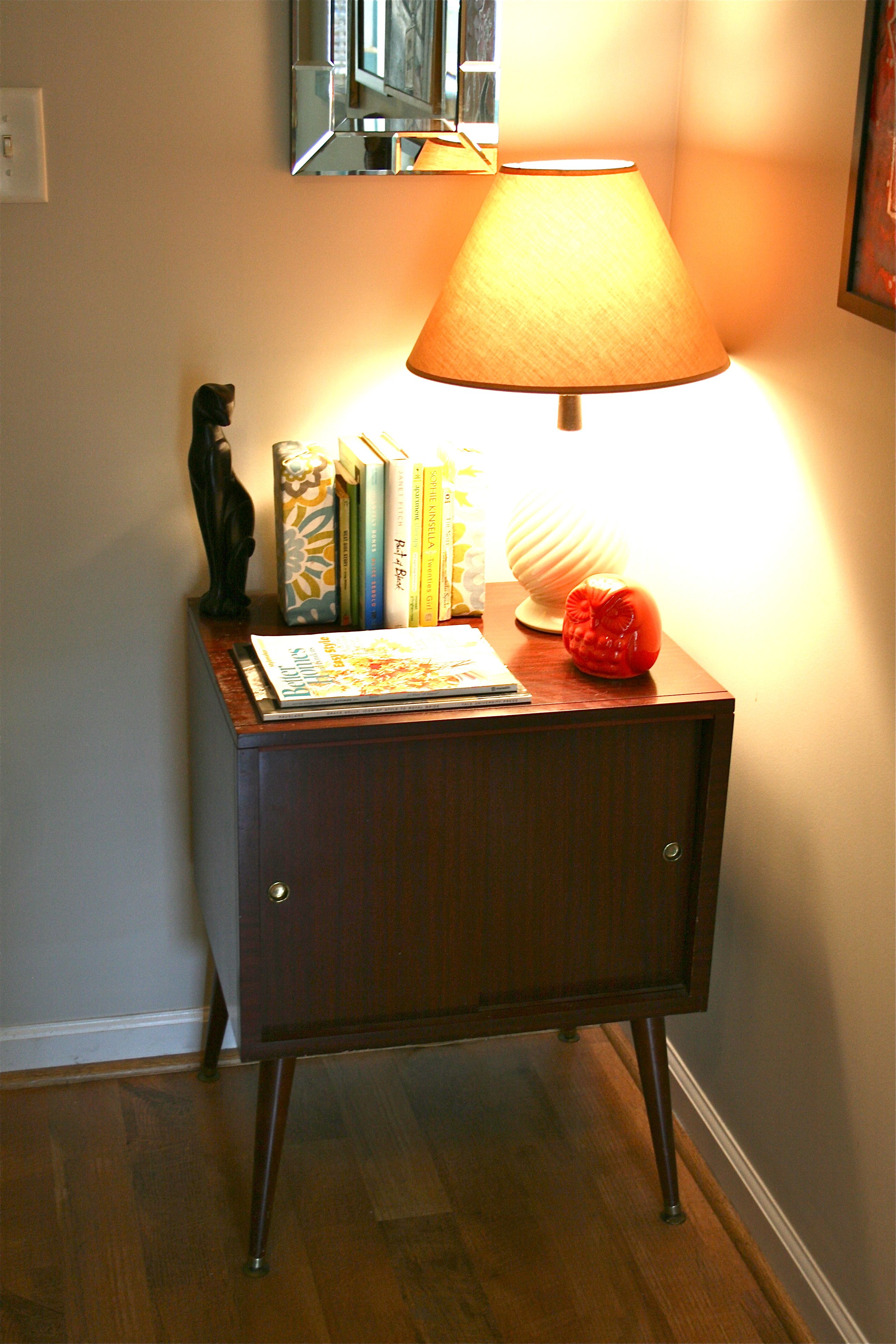 I first tried them on the inside of a bookcase, as seen below. I liked them in that arrangement, but they seemed a bit hidden.
