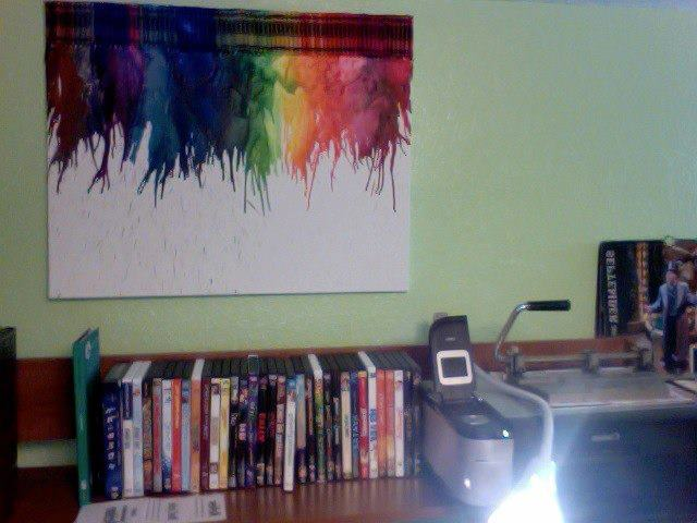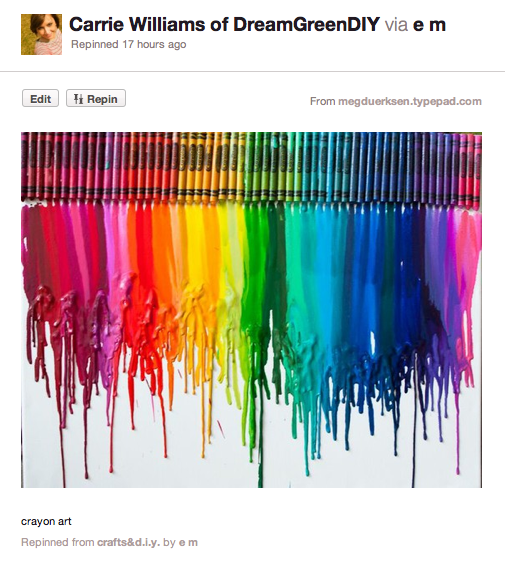 If you are as Pinterest-obsessed as I am, then you’ve probably seen this project pictured below crop up. Using adhesive, you press a row of crayons to the top of a canvas and melt the colored wax down with a hair dryer: