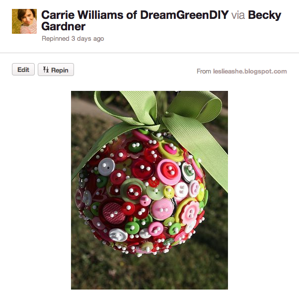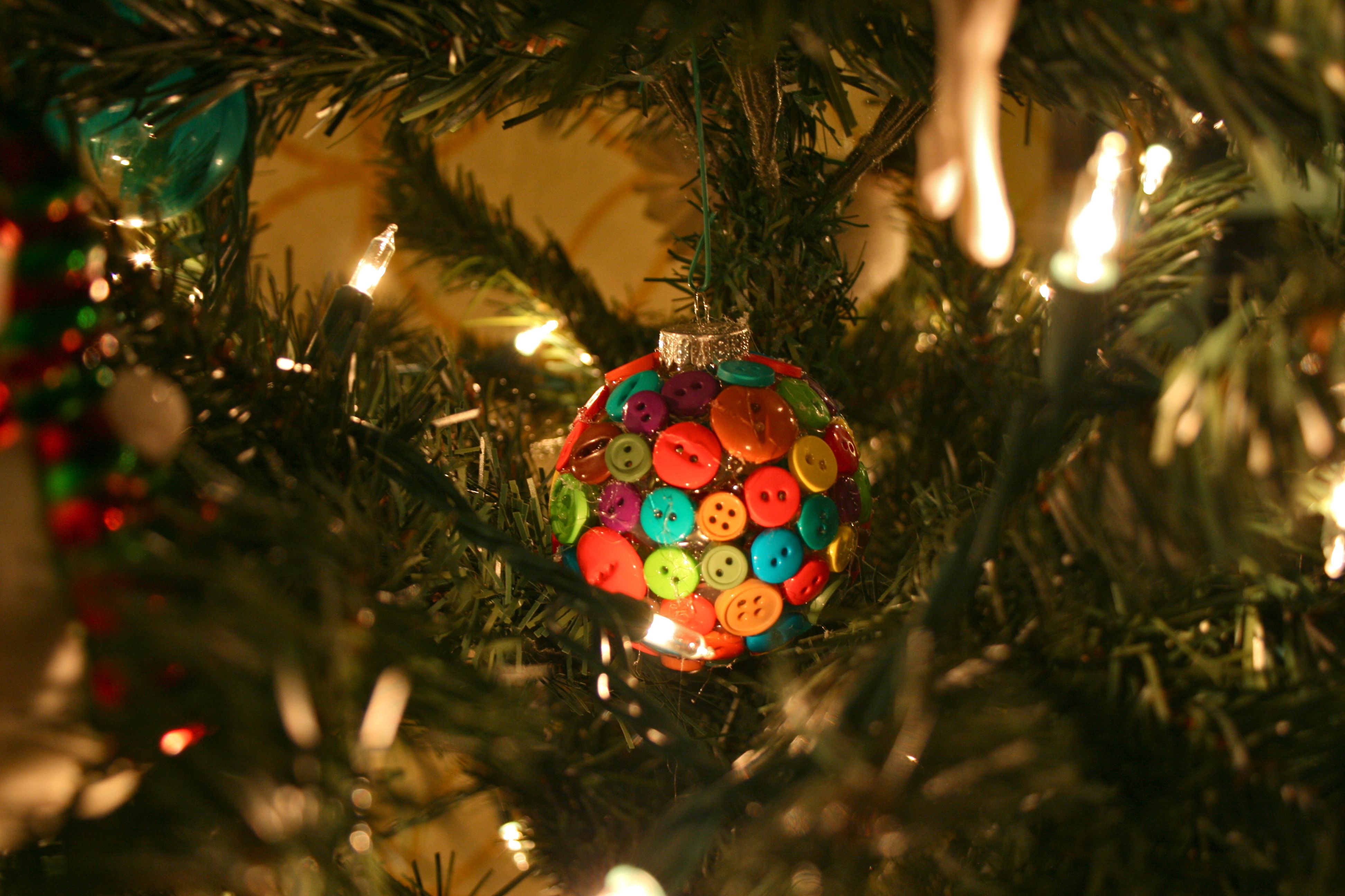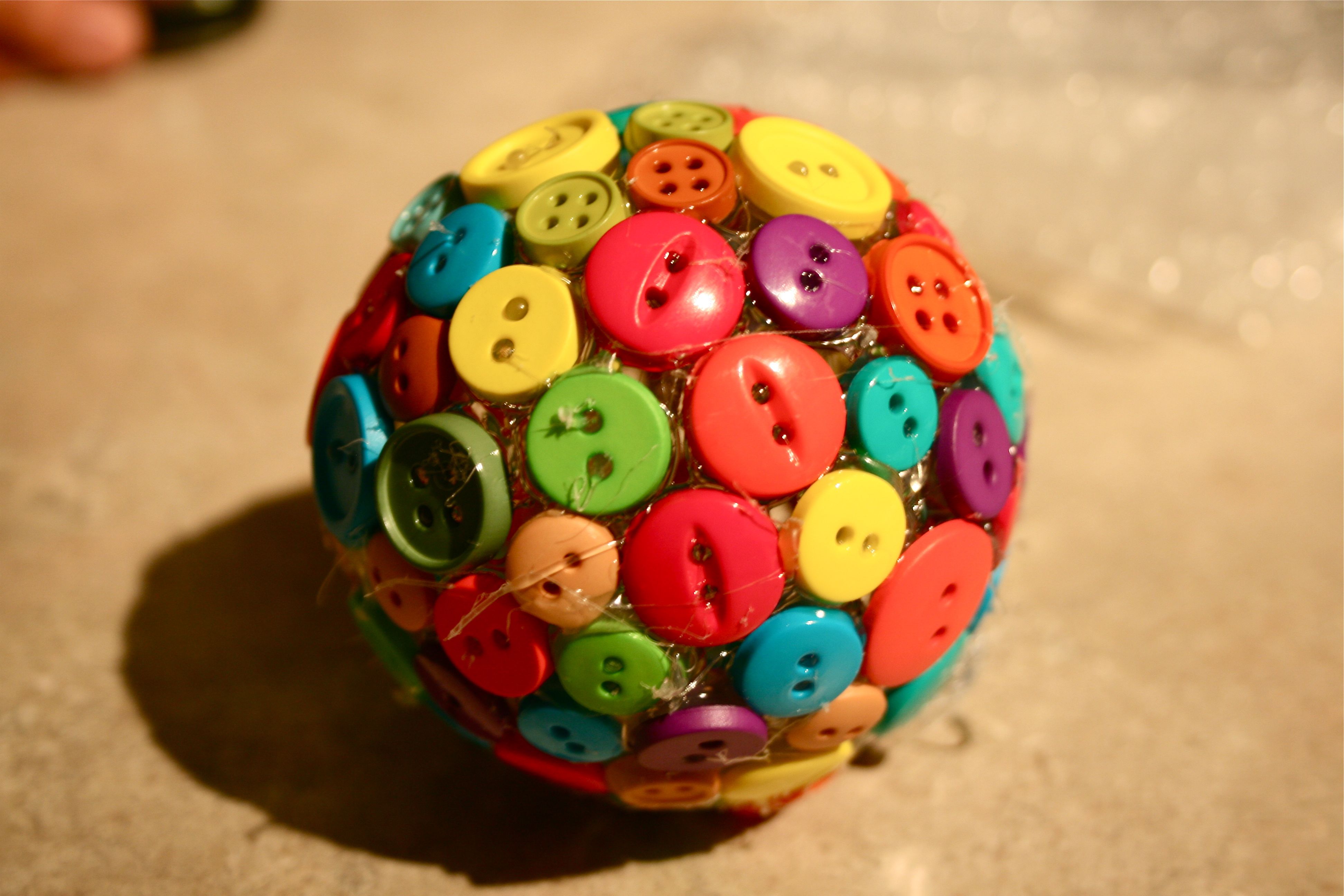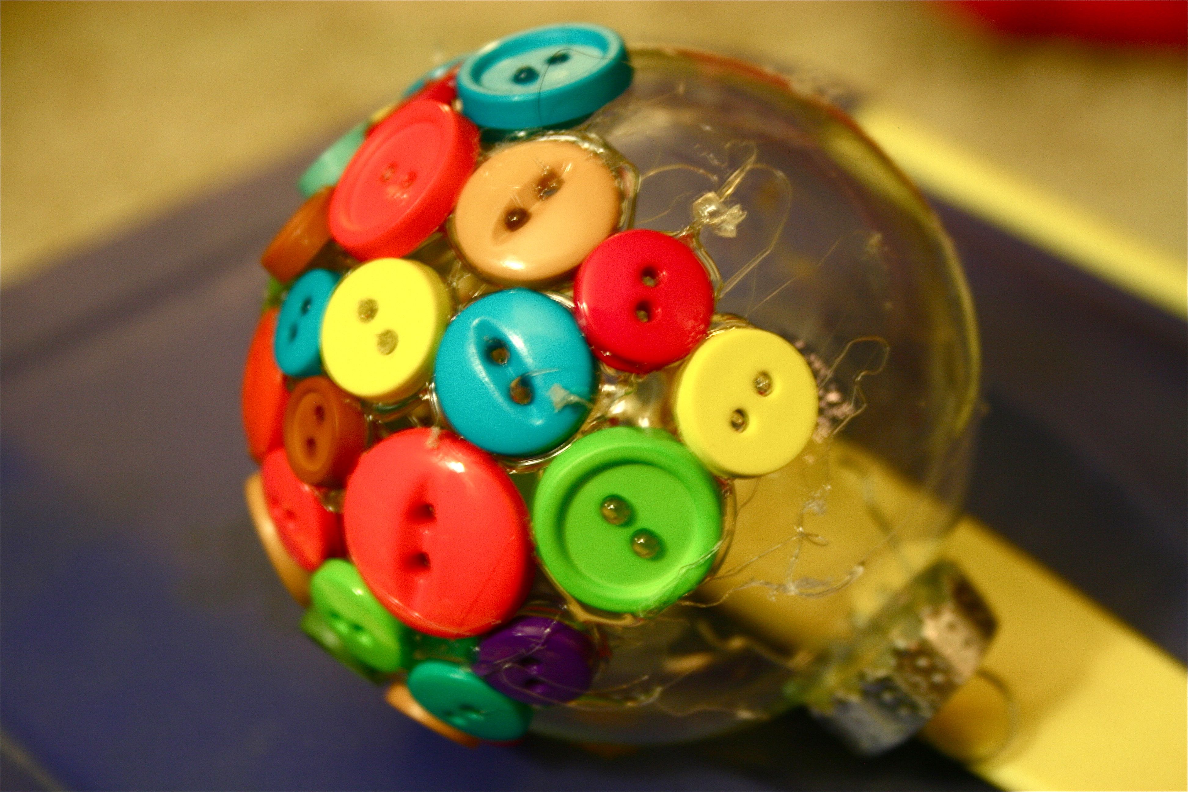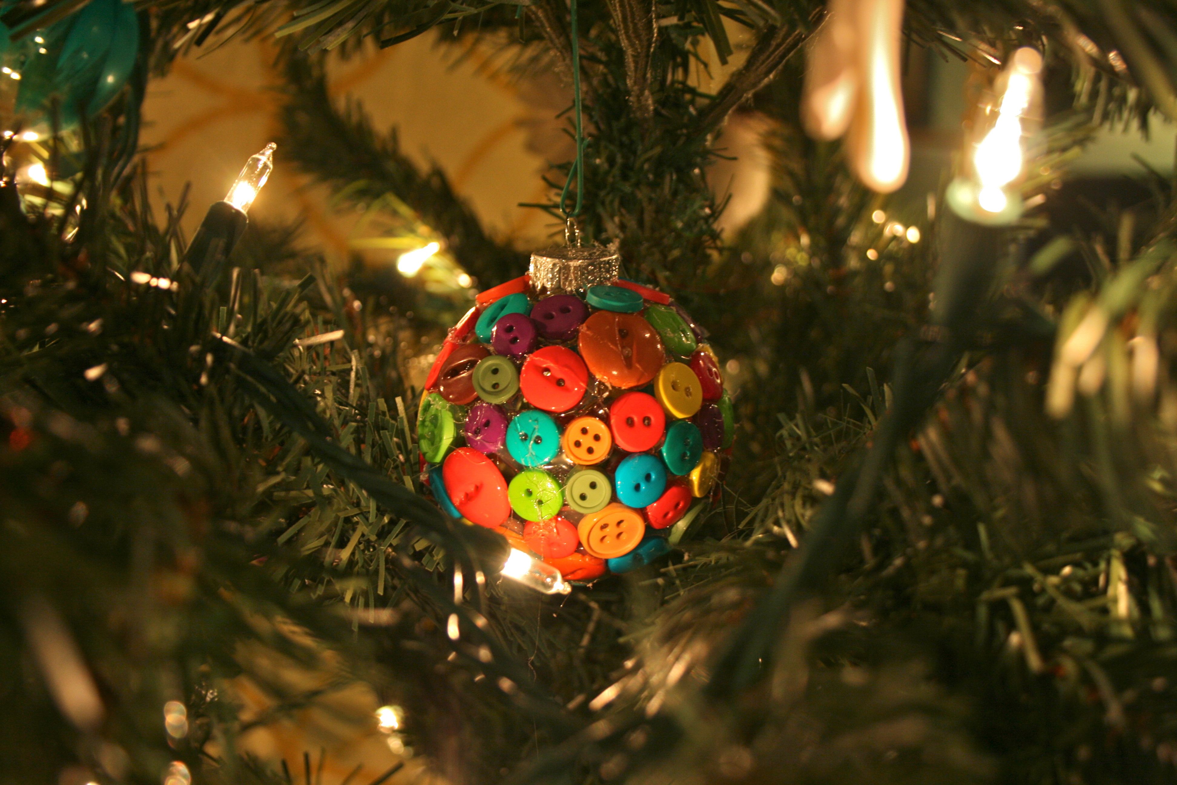 Here’s my version of the adorable button ornament linked to above – All I used was a hot glue gun and a baggie of leftover buttons from this project: