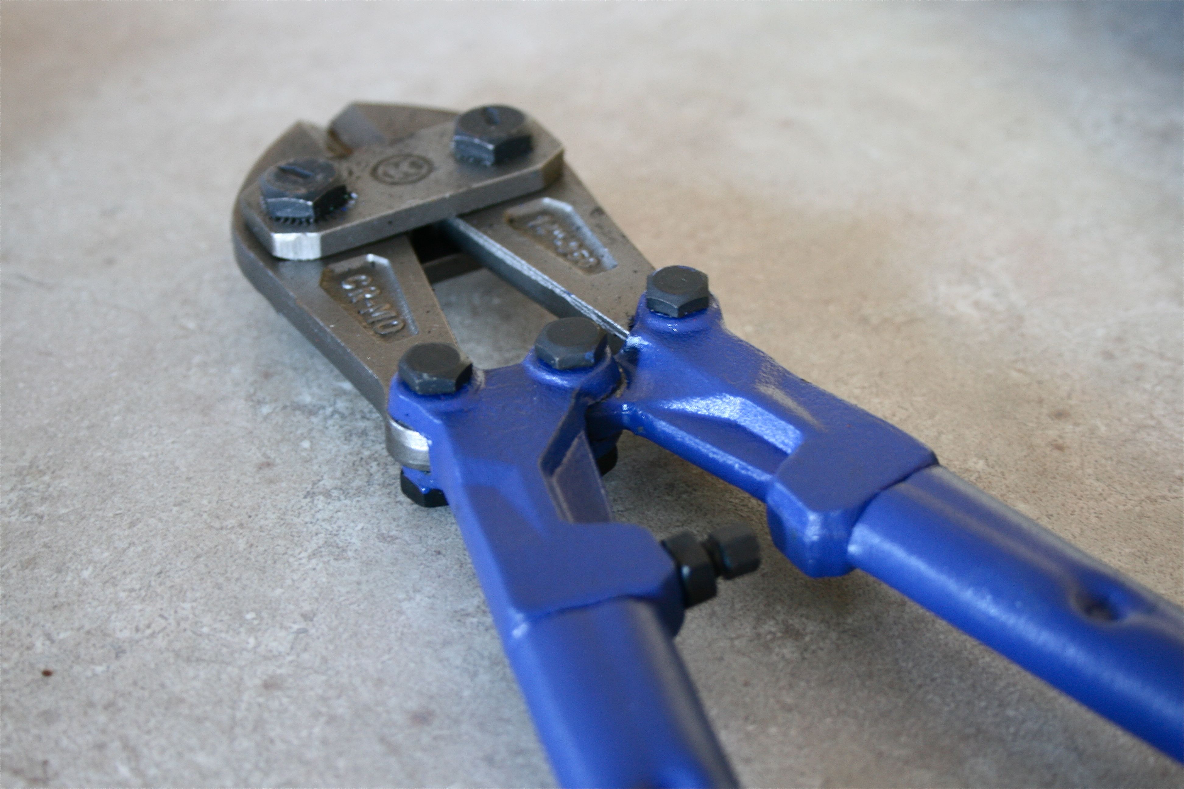 The last step was to grab John’s bold cutters and snip the protruding screws off the back. Drawer pulls need long screws to attach to a drawer front, but we don’t need all that extra metal for this project. The bolt cutters are an absolute God-send – It takes NO strength at all to bite through tough metal. I highly recommend picking up a pair. I think ours cost about $15.