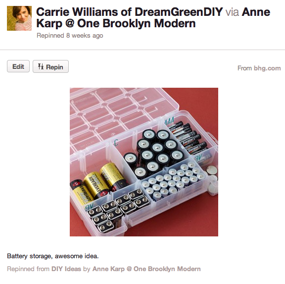 How do you guys store your batteries? Got any other witty “new uses for old things” tricks up your sleeve? Gotta love Pinterest…