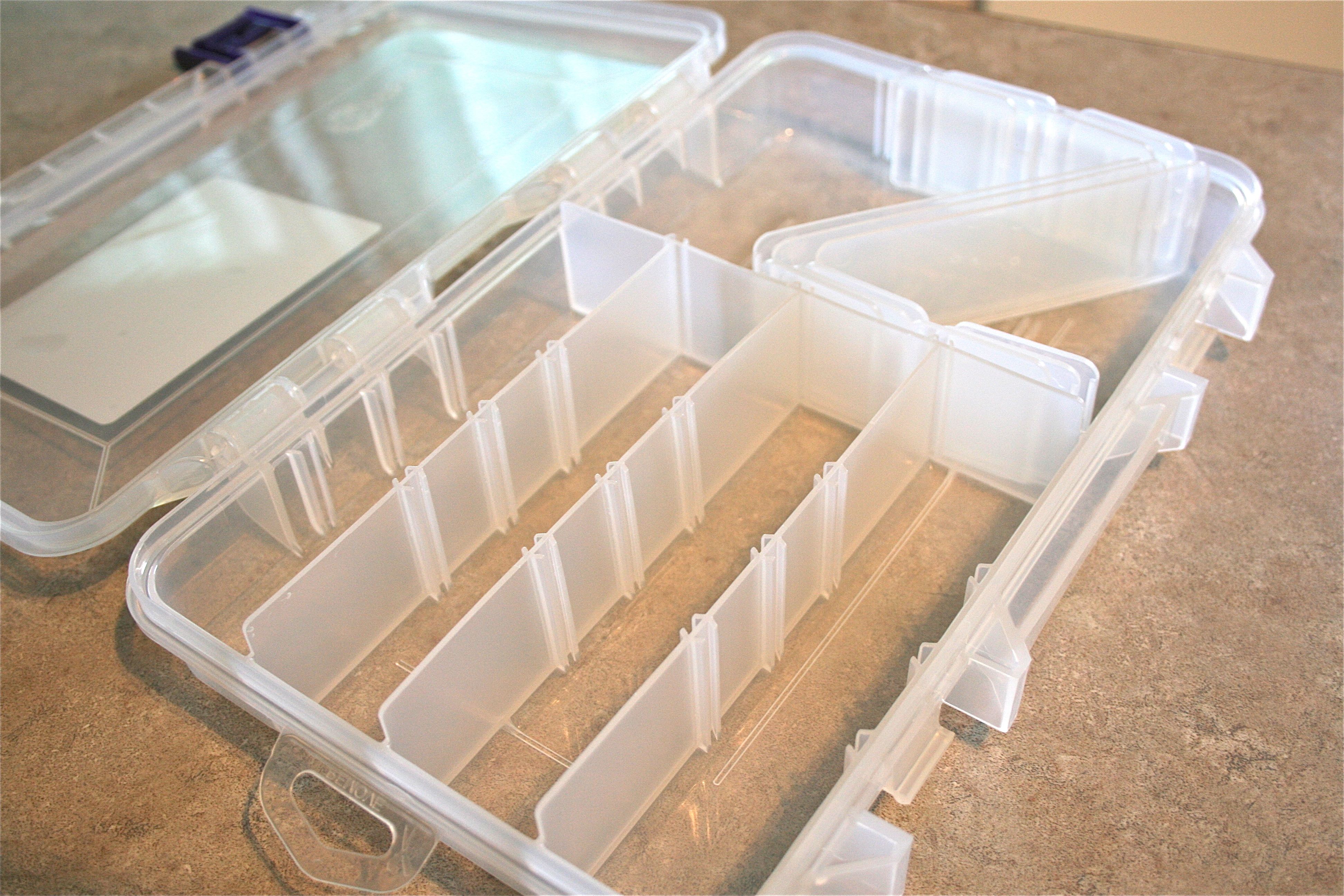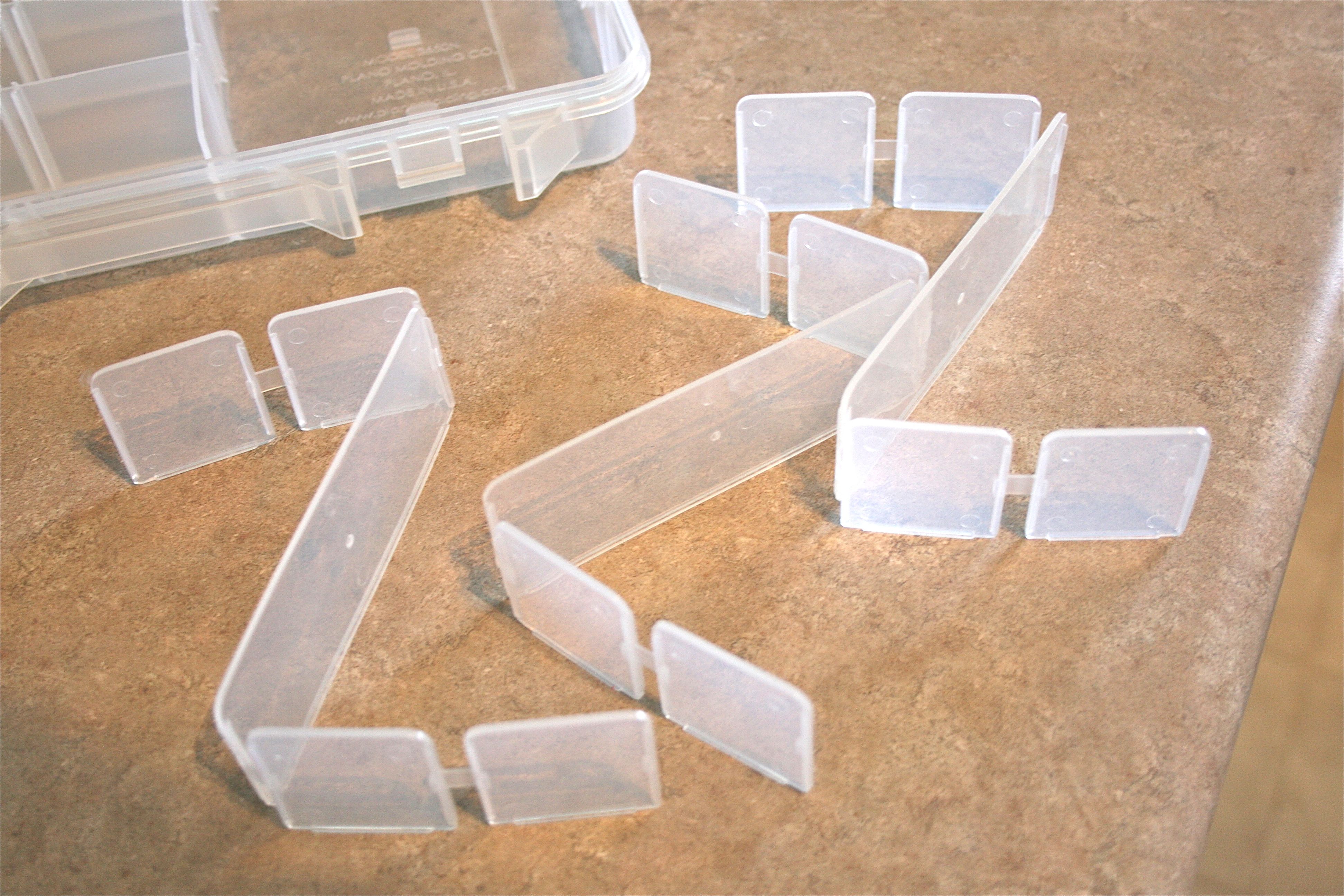 My favorite part is the customization feature – See those extra “Z”s of plastic in the big compartment to the right? Those can be cut down to a pile of extra plastic “walls” to slide in as partitions, allowing you to make special boxed areas based on the size of your materials to be stored.