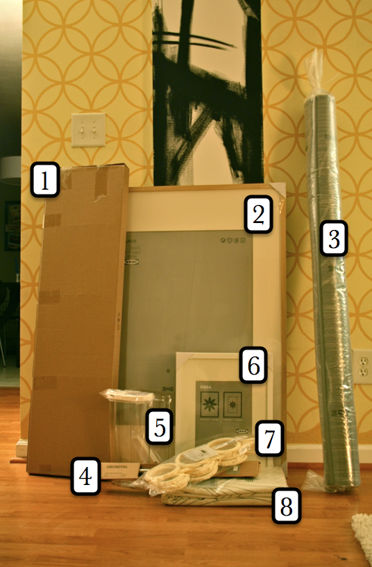 8. Curtains: These gorgeous, super heavy and modern grommet-topped curtains are my favorite purchase of the day – I cringe to think back on how I actually walked away from them initially. As a first-time customer, I was really thrown off that all of the curtains were 98 inches long – Way too long for our windows. So I sadly pushed our cart away…But twenty minutes later, as we were heading through the self-serve furniture section on our way to the cash registers, I stopped and said I was going back in. John ended up staying behind because, in his words, turning around and going back in was like going against the flow – A big Ikea-one-way-aisle “no no.” But I was determined. So I raced back to where I thought they were and ended up twisting down a few extra aisles until I found them again. Angels sang. At $35.99 for two panels, I knew I couldn’t pass up the deal. And miracle of all miracles, I managed to find my way back to John and the cart with curtains in hand.