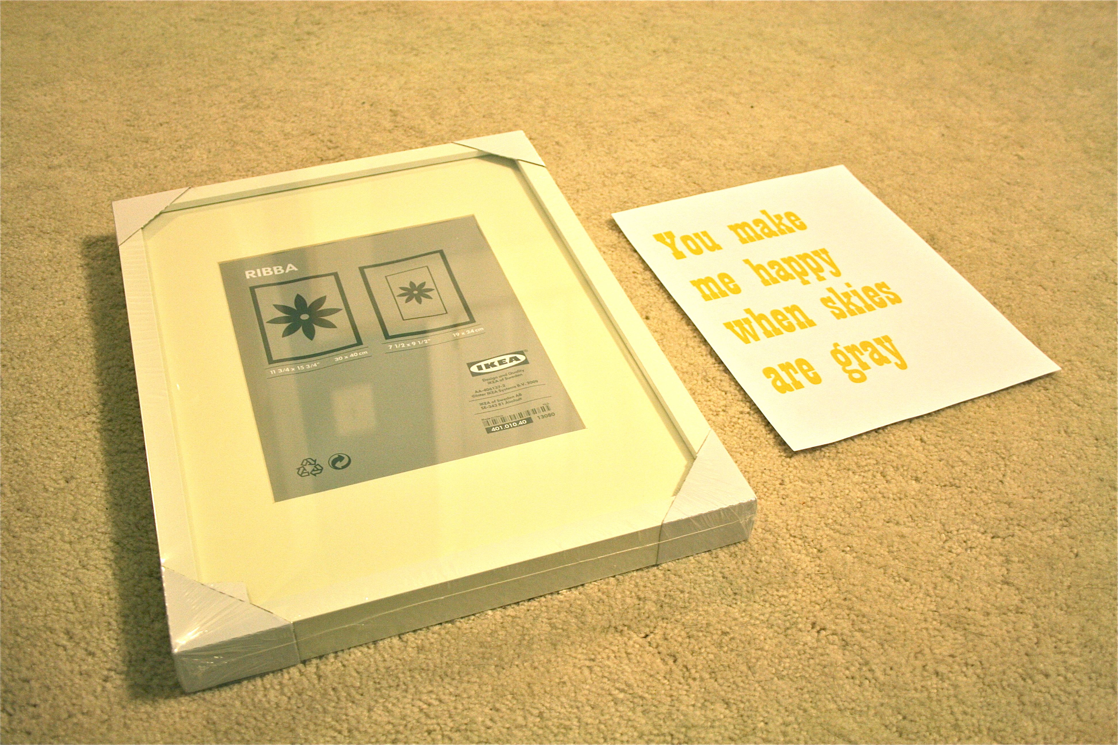 6. Two more Ribba frames: My other two Ribba frame purchases were of the smaller, white finish variety. This purchase was inspired by the image below of a white frame with a graphic phrase in it: