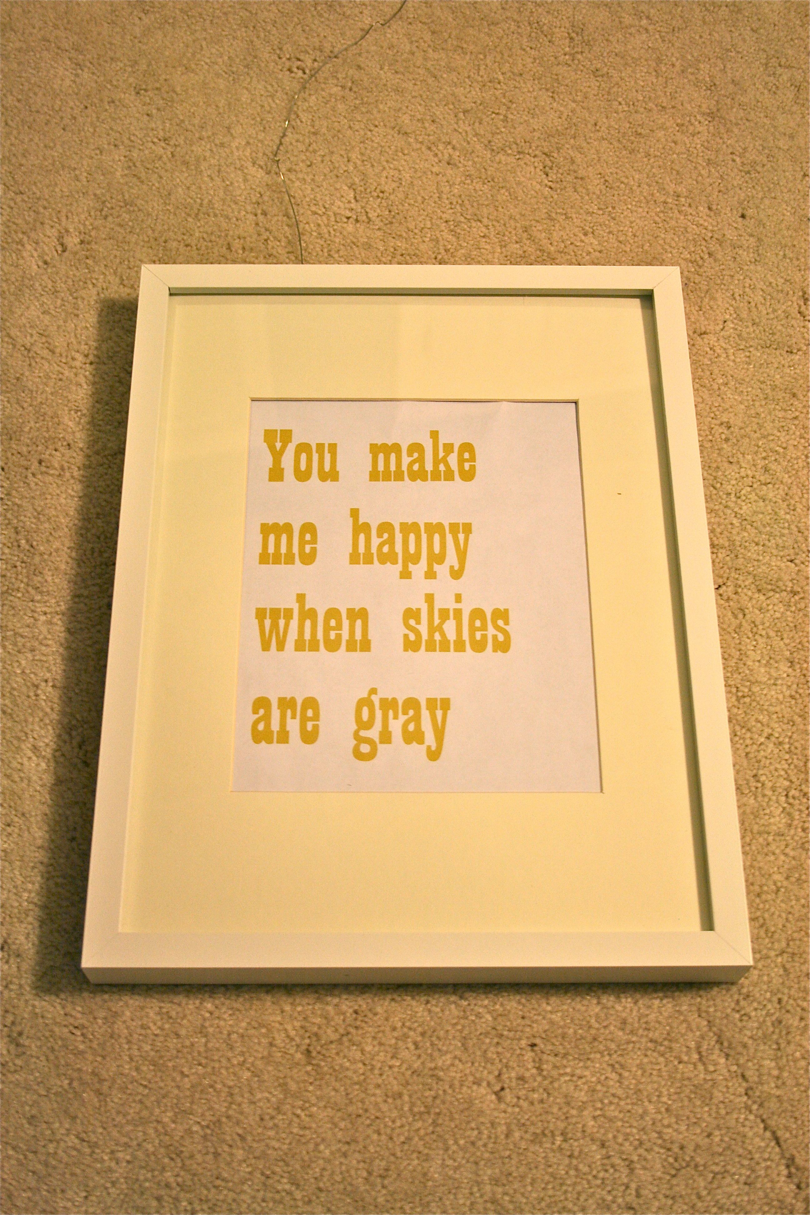 To make my own version, I simply typed up a little happy phrase in Word and printed it out in yellow ink. I filled my first Ribba frame with the print and plan on hanging it in our soon-to-be-revamped studio. The second Ribba frame hasn’t gotten filled yet – I’m waiting on a little more inspiration to hit me, but you’ll hear alllllllll about that when I do.