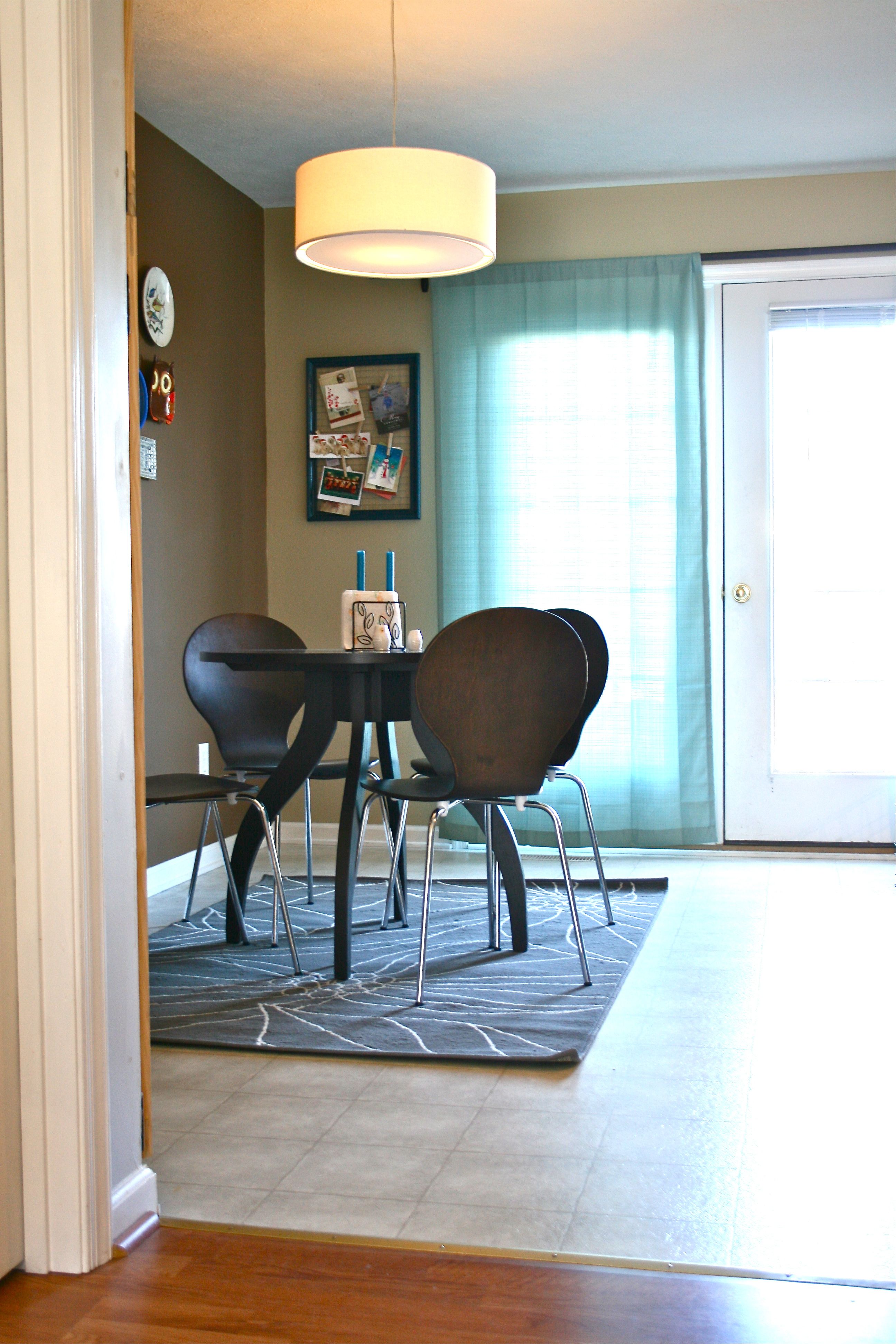 3. Gray and white patterned rug: This little lady is nearly 5 ft. x 8 ft. and was only $20 – John actually bought this for me for our anniversary (Thanks, babe!). We decided to lay it beneath our dining room table despite a bit of hesitation on my part in regards to putting a nice rug under the table where we eat every day. But honestly, at $20 who really cares if our spaghetti dinner gets spilled on it? Plus we’ve got our newly organized arsenal of cleaning products within easy reach – I think it’ll survive…It adds so much warmth to the space and is super cozy to nestle bare toes into while eating breakfast in the morning.