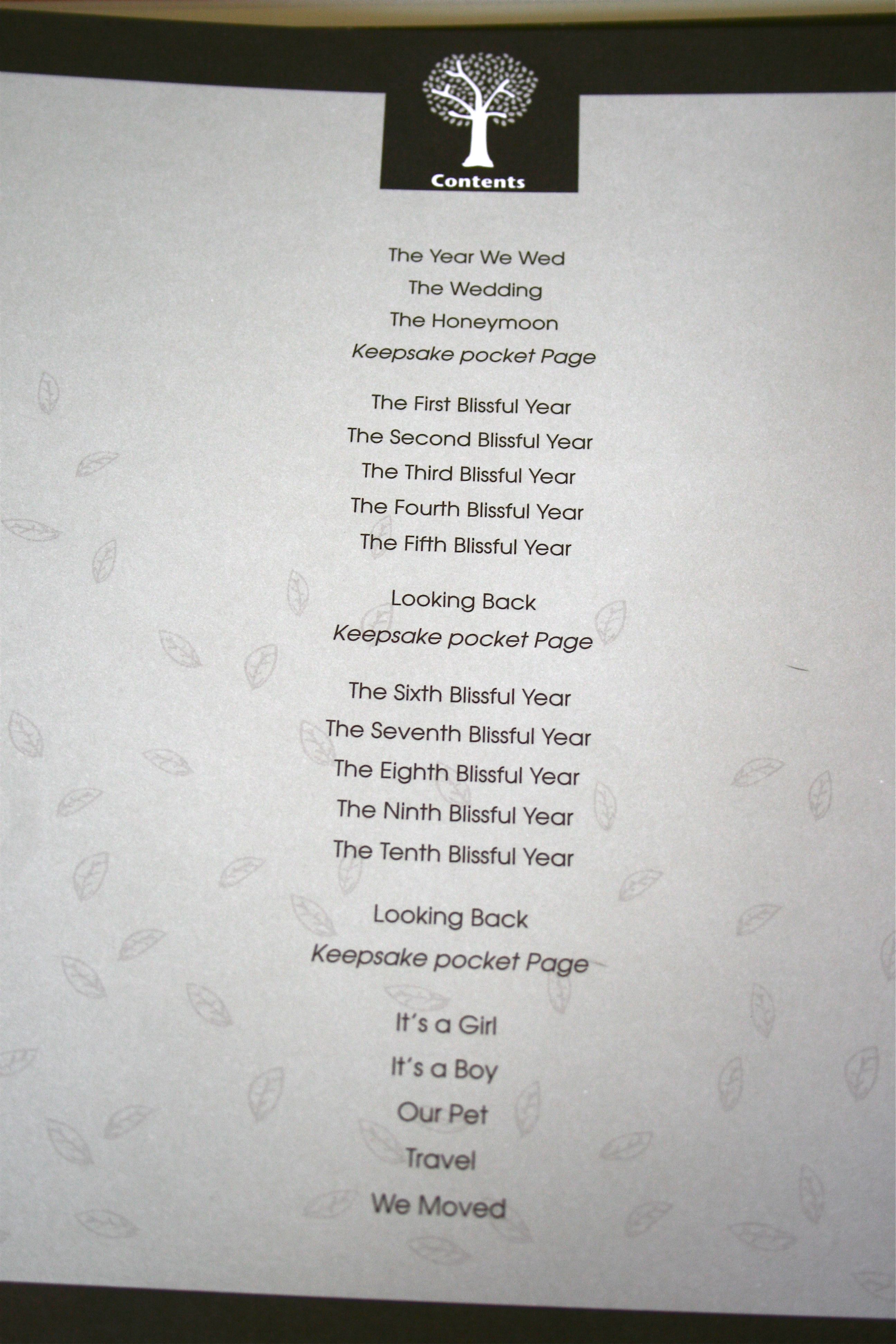 When you glance over the contents, you’ll see that the book covers EVERYTHING – From the wedding and honeymoon, to anniversaries, babies, pets, traveling and moving. Not only had I stumbled upon a memory book for our marriage, but also a baby book, a way to document the pets in our lives (who are our current babies and the lights of our life) and a moving diary for when we choose to sell the house and take on a new home.