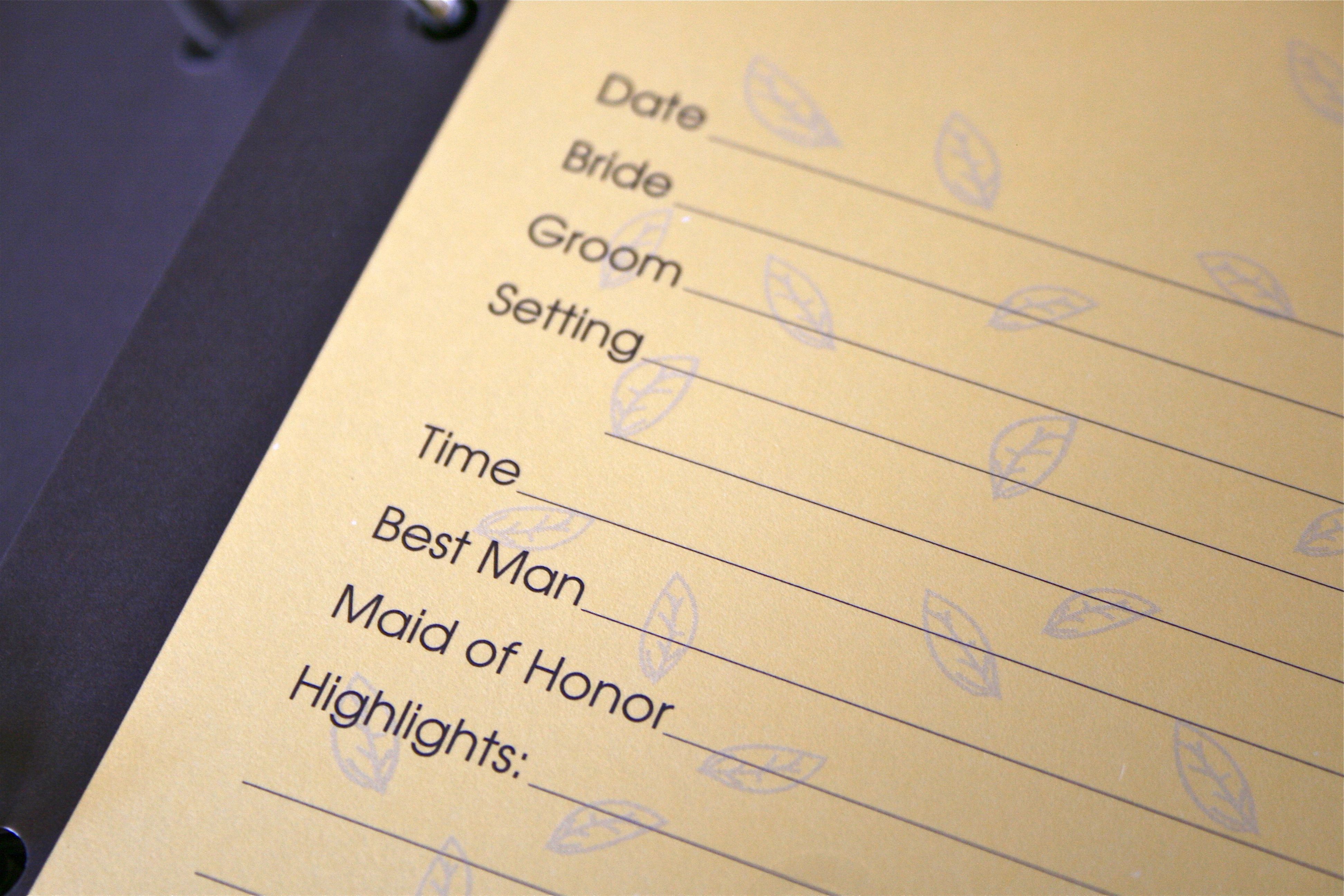 And of course, with any wedding memory book, there is a page for the wedding day. I thought it was a tad funny that they asked for the names of the bride and groom – Duh!