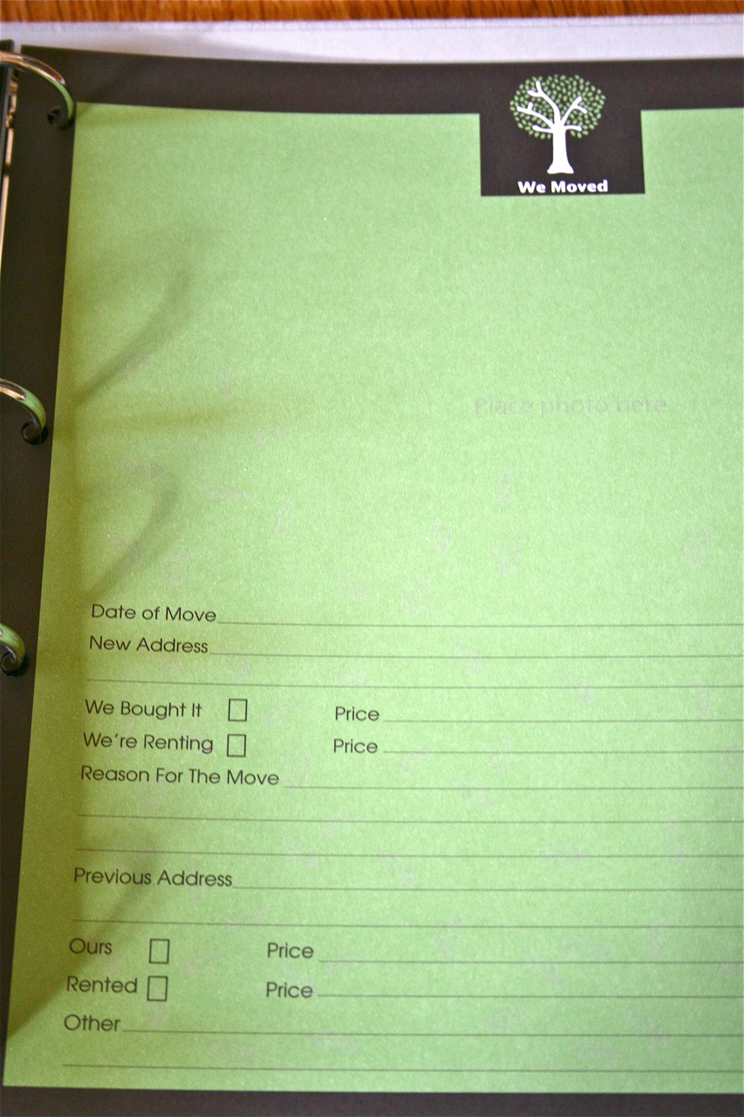 Here’s a look at the page for moving memories, with places to document old and new addresses, dates and prices. This could be an interesting page to look back on after a few moves, especially to see how the price of real estate changes over the years.