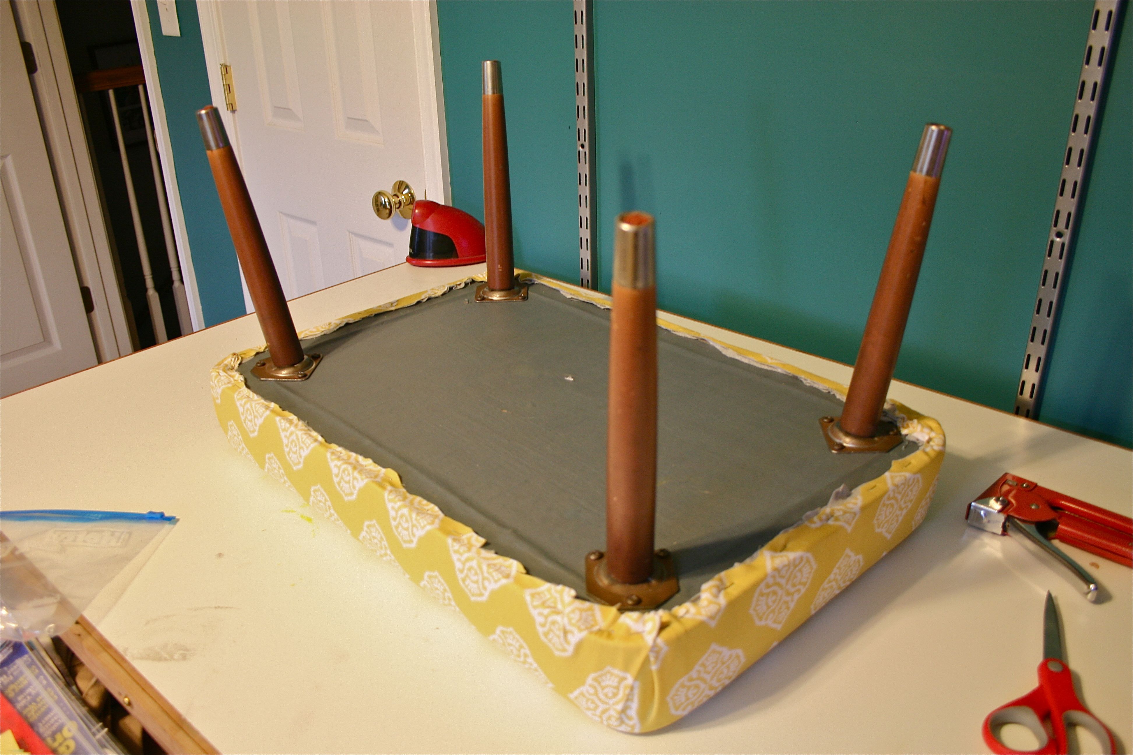 No need to worry though, because all was well – The new fabric was straight, free of creases and dressed up the ottoman perfectly. No more stains and rips in sight.