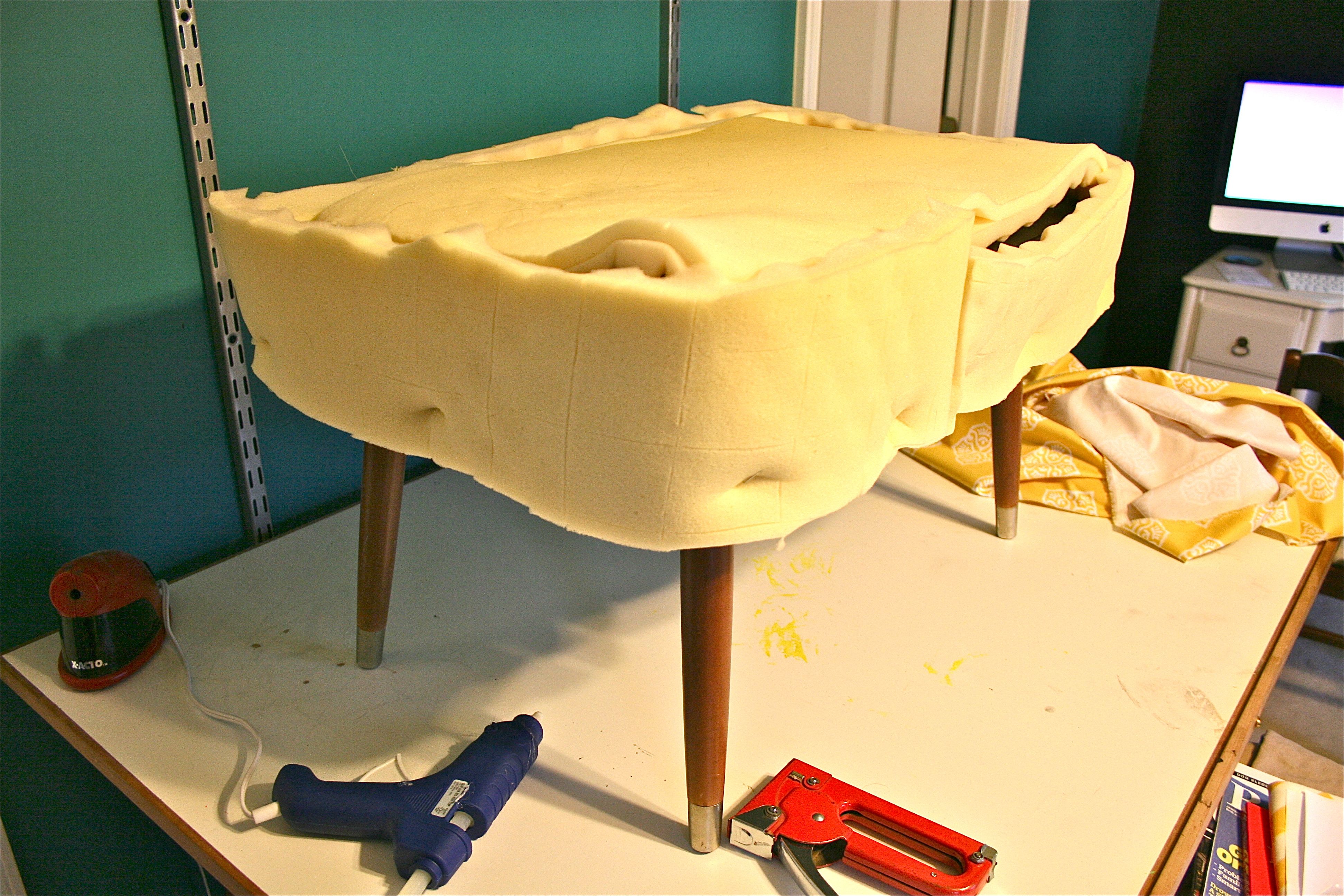 Oh, and the ottoman is one-legged because, after attempting to remove all of the legs for easier maneuverability during the recover phase, the last one wouldn’t budge thanks to a stripped screw. It didn’t get in the way too much, thankfully.