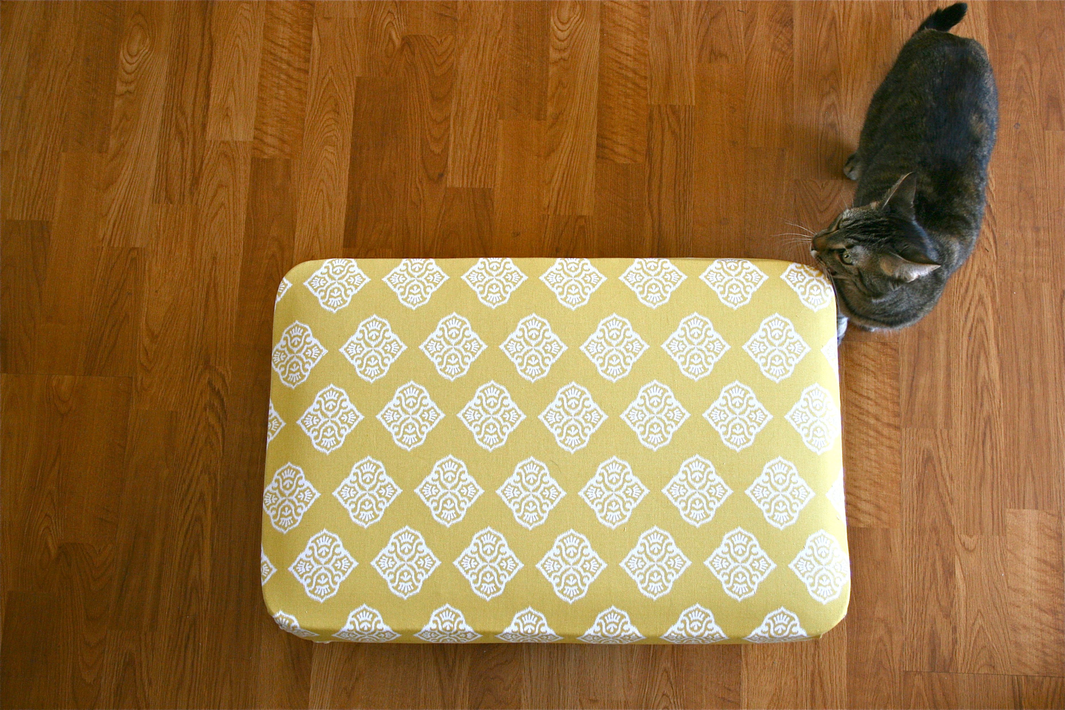 No need to worry though, because all was well – The new fabric was straight, free of creases and dressed up the ottoman perfectly. No more stains and rips in sight.