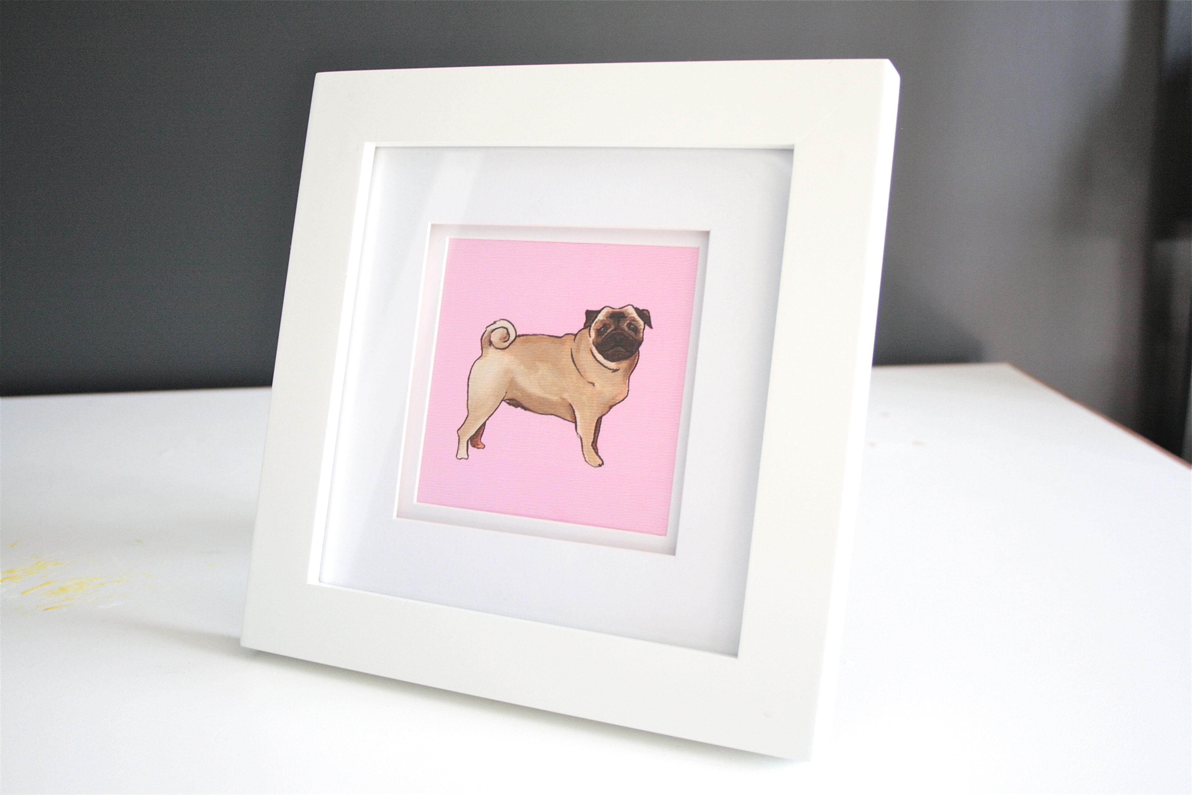 Check out this happy little dog in his new frame – I love the pop of color and that white frame and mat really does let the art shine.