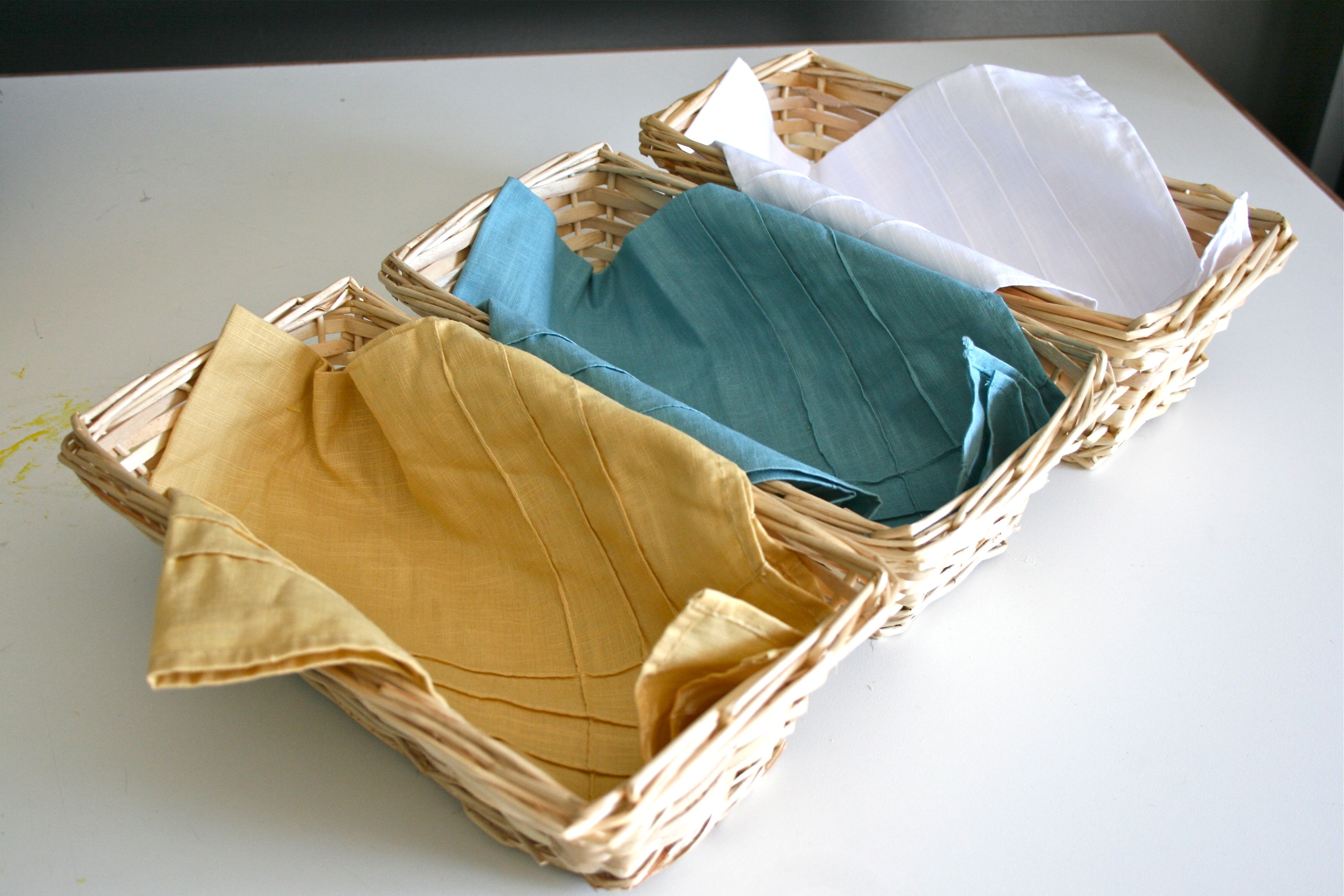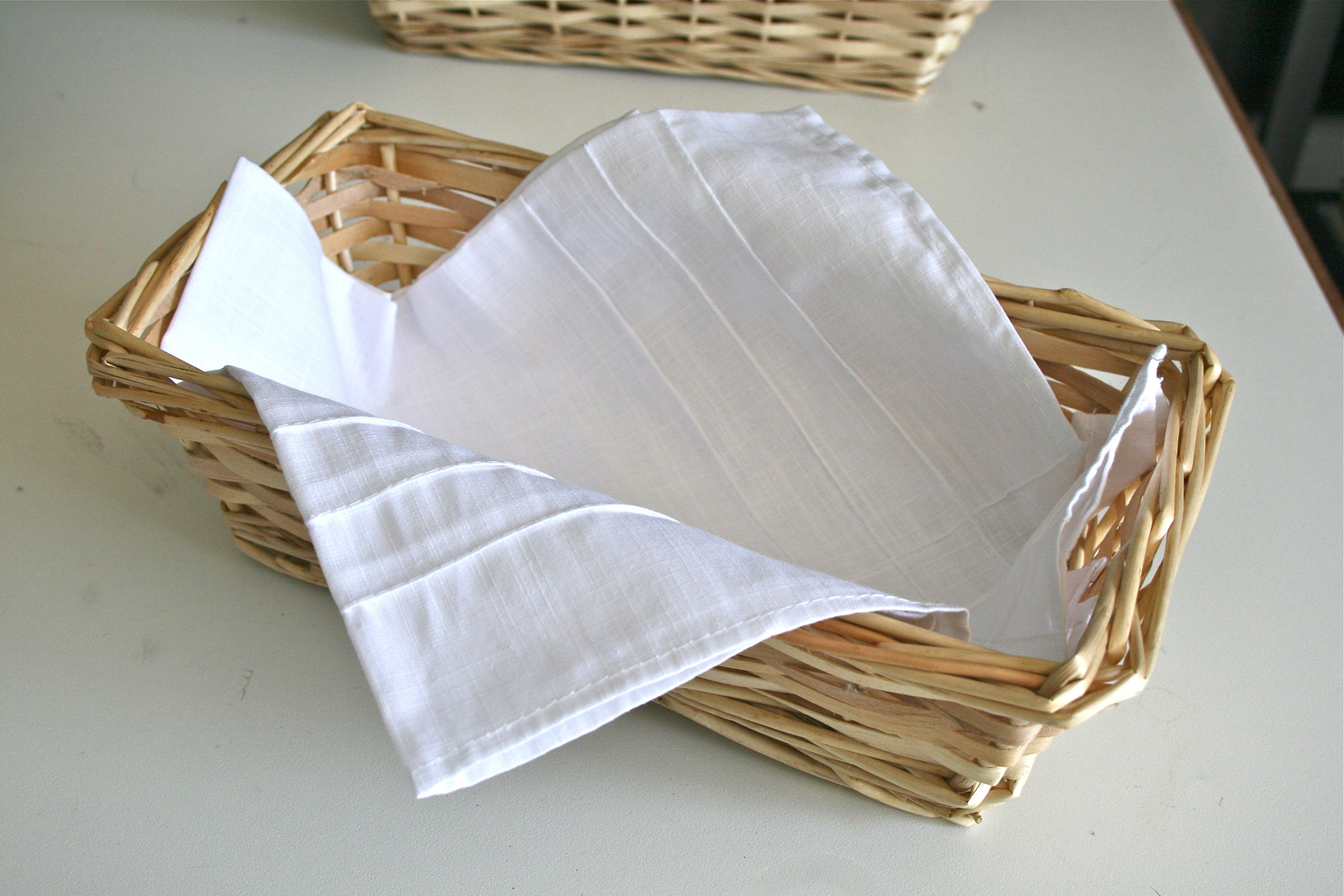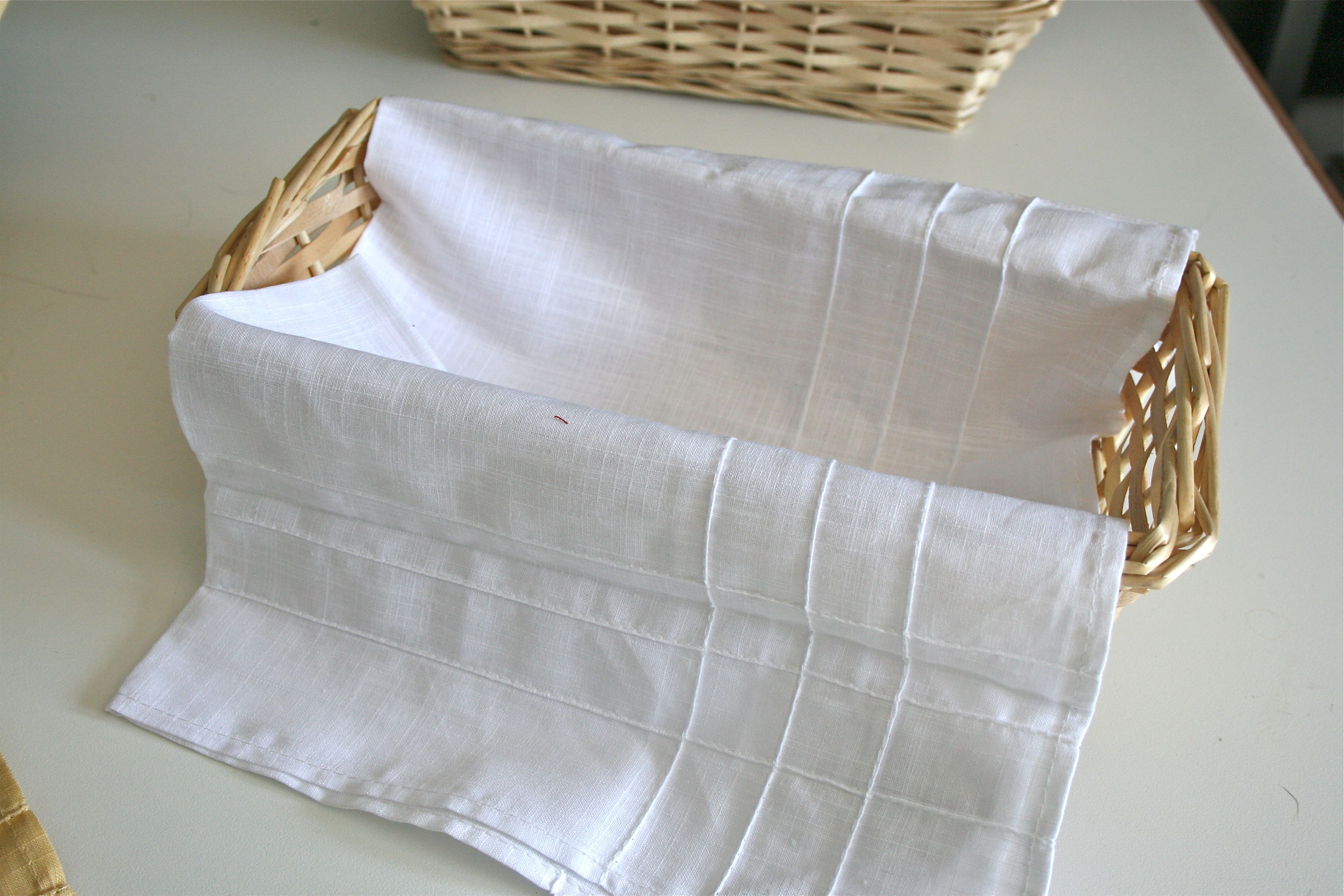 When opened to their full capacity, they were way too big – I really just wanted something to lay across the bottom and inside edges of the basket. But keeping them folded into small squares and laying them at a diagonal did the trick.