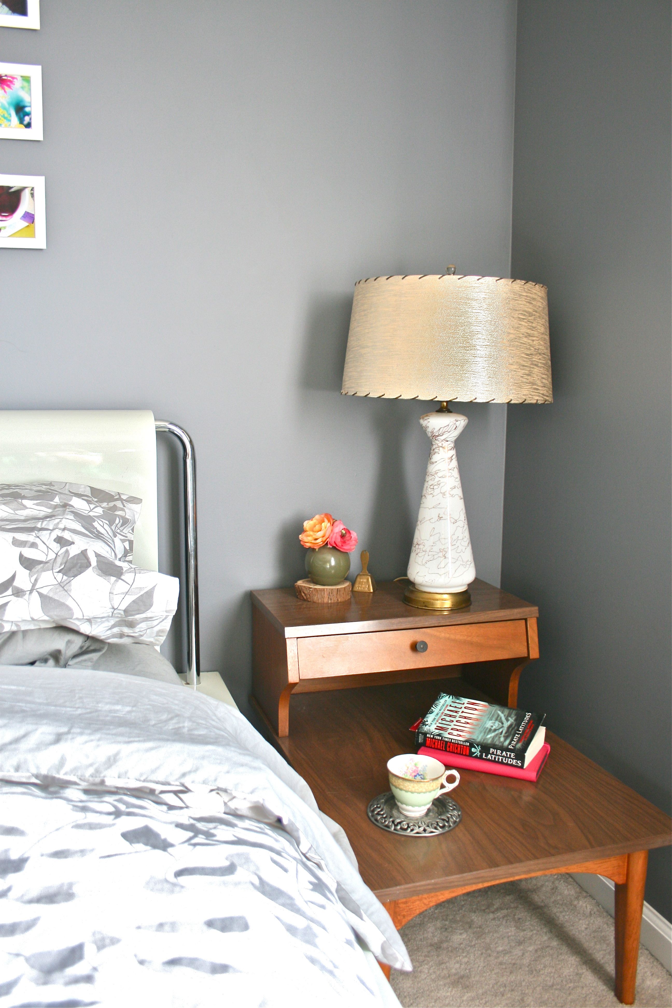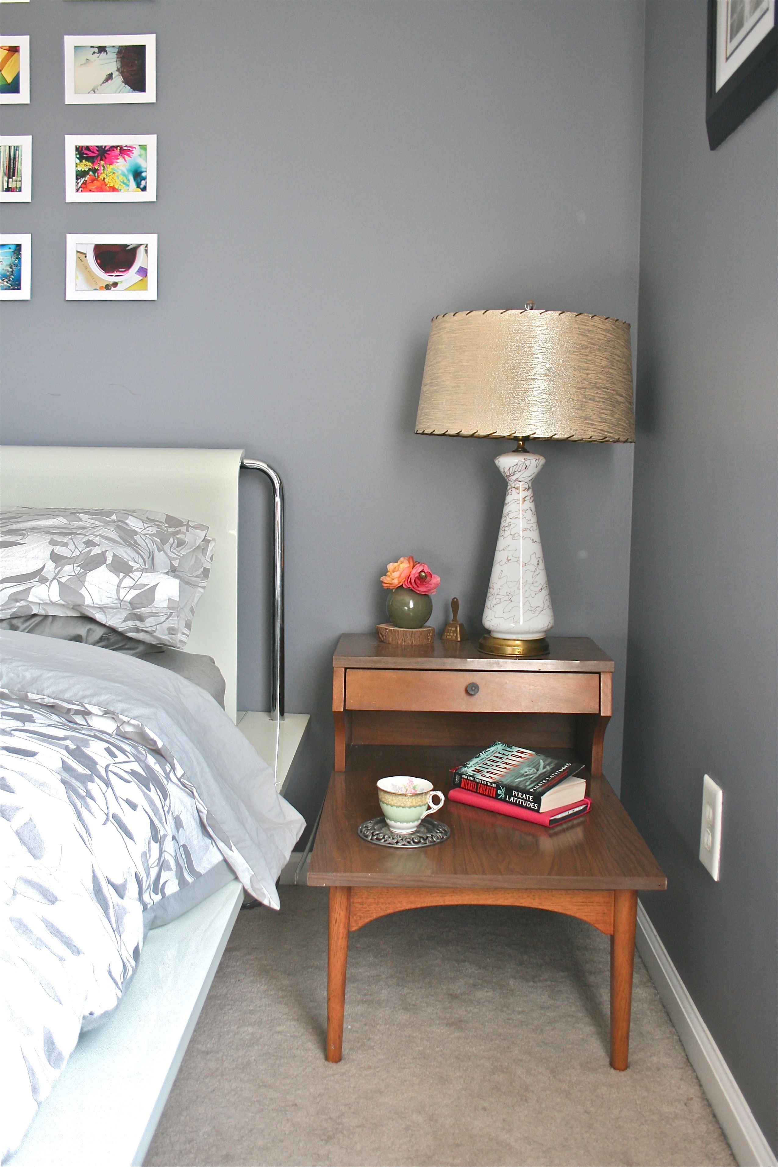 Soon after returning from our trip, I dressed the bed and stepped back hoping to be wowed. The pattern and cushy down comforter were perfect, but the rest of the space was a bit lacking. You see, after posting a number of pieces of furniture for sale, I managed to pass my existing nightstand off to a friend. I was happy to give it a new home, but sad to be left with nothing to set my book on.