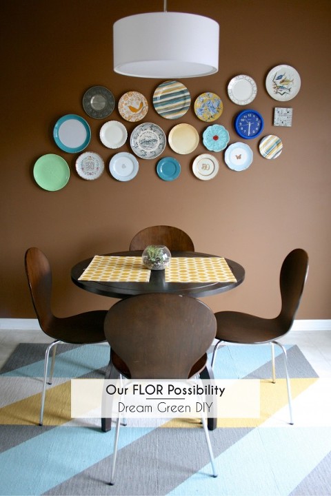 Now here are the lovely “After” shots of the space with its new rug, plus a new collection of color coded plates to match. We are in love with the fresh modern look and can’t thank FLOR and Michelle enough for making this upgrade such a manageable transition. It finally feels like “us.”