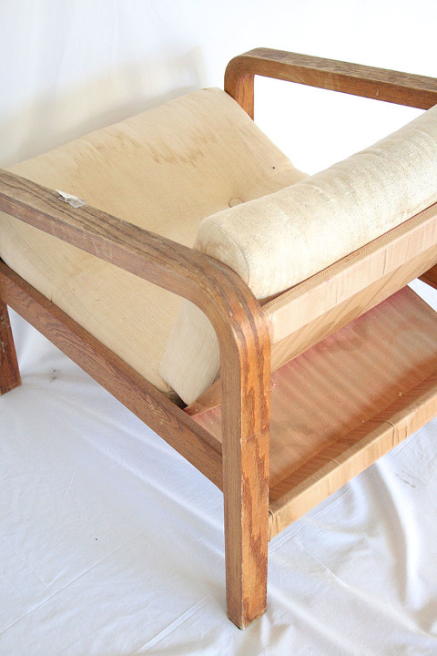 Why I didn’t have the folks over at Phil’s Upholstery replace the canvas support system when they reupholstered the cushions, I’ll never know. I think, because this project was my first foray into reupholstery, I was just plain worried about the cost and hassle. Happily, the cushions only cost $60 to make over, and the chair was looking much, much better. But, of course, it wasn’t done.