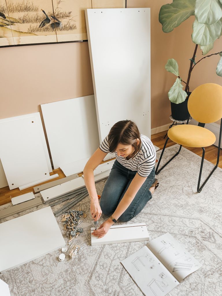Before I could wallpaper, though, I needed to tone down the rest of the walls with fresh paint. I ultimately landed on a color called “Pediment” from Sherwin-Williams that was a nice complement to the gray color in the wallpaper I had chosen from Fancy Walls—a pattern called “Sandy Tiles.” It took two coats to paint over the old blue color, and then I let the entire room cure for about a week before attempting to wallpaper. I probably didn’t need to wait quite that long, but it is important to let new paint fully harden before attempting to wallpaper over top of it, that way you don’t inadvertently peel wet paint off the wall when laying/readjusting wallpaper panels during the installation phase.